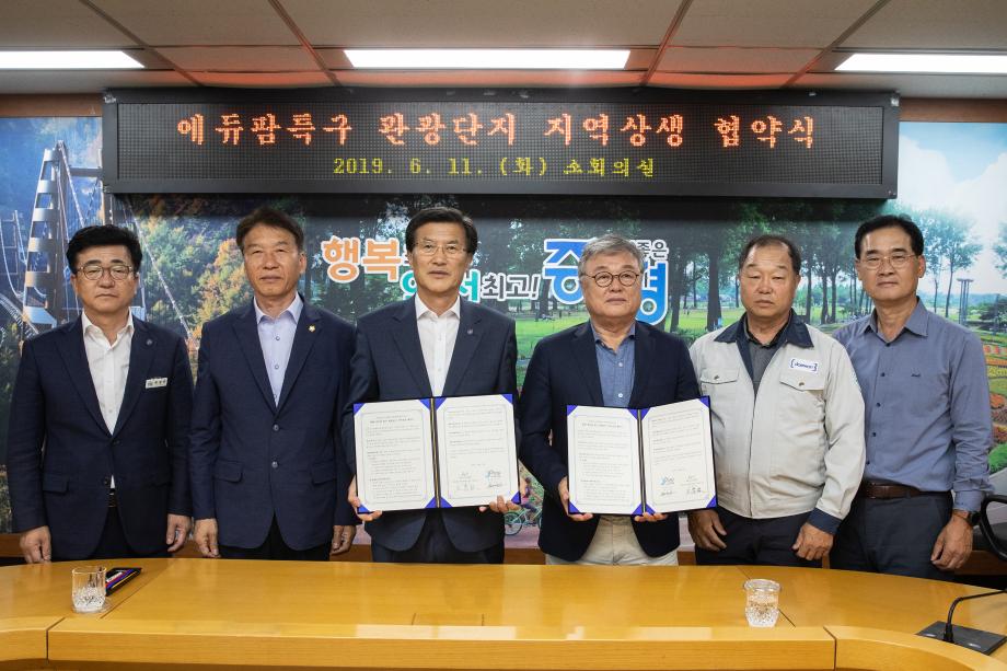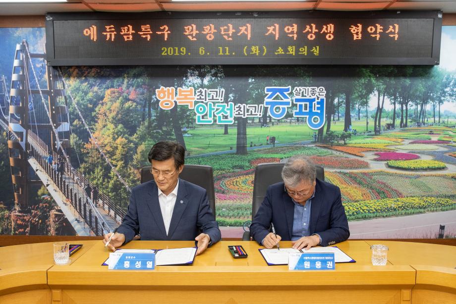 증평군과 충북 최초 관광단지 ‘증평 에듀팜 특구’의 시행사 ㈜블랙스톤에듀팜리조트가 지역경제 활성화에 힘써나가기로 뜻을 모았다.