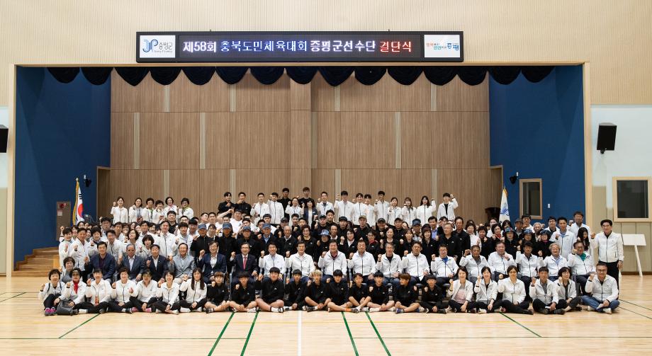 증평군체육회는 13일 증평읍 송산리 증평생활체육관에서 제58회 충북도민체육대회 참가 선수단 결단식을 열었다.