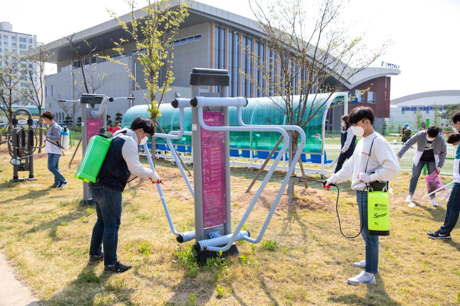 증평군체육회(회장 박성현)가 29일 증평읍 연탄리 증평생활체육관과 주변 시설에 대한 집중 방역과 환경정비를 실시했다.
