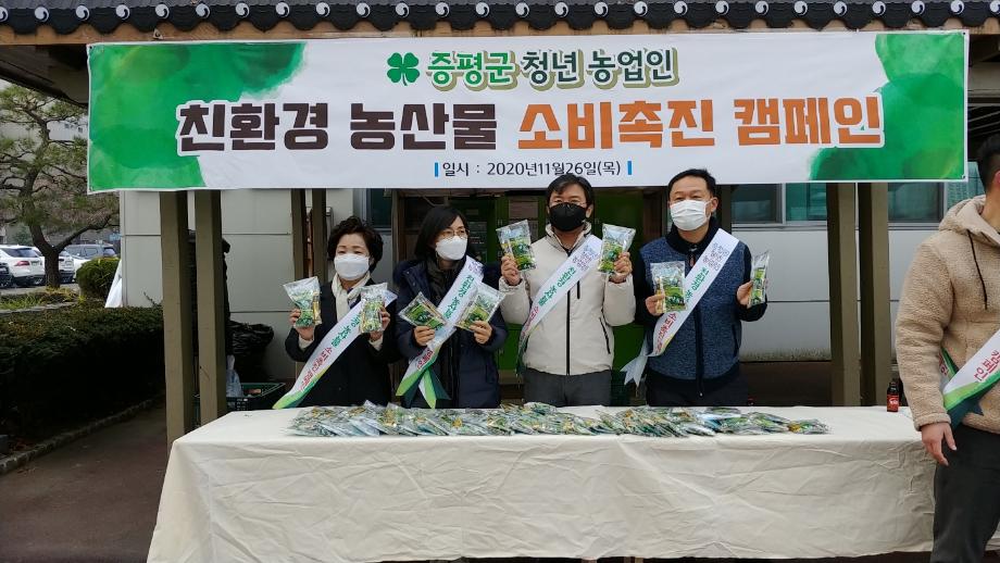 증평군4-H연합회(회장 박제성)는 충청북도4-H본부의 지원으로 26일 증평군청 민원실 앞에서 영농4-H회원들과 관계자 10여명이 참석한 가운데‘친환경 농산물 소비촉진 홍보행사’를 실시했다.