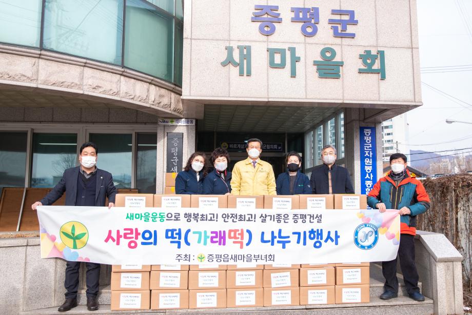 증평읍새마을부녀회(회장 조정화)는 5일 증평읍 장동리 새마을회관 앞에서 설맞이 사랑의 가래떡 나누기 행사를 가졌다.