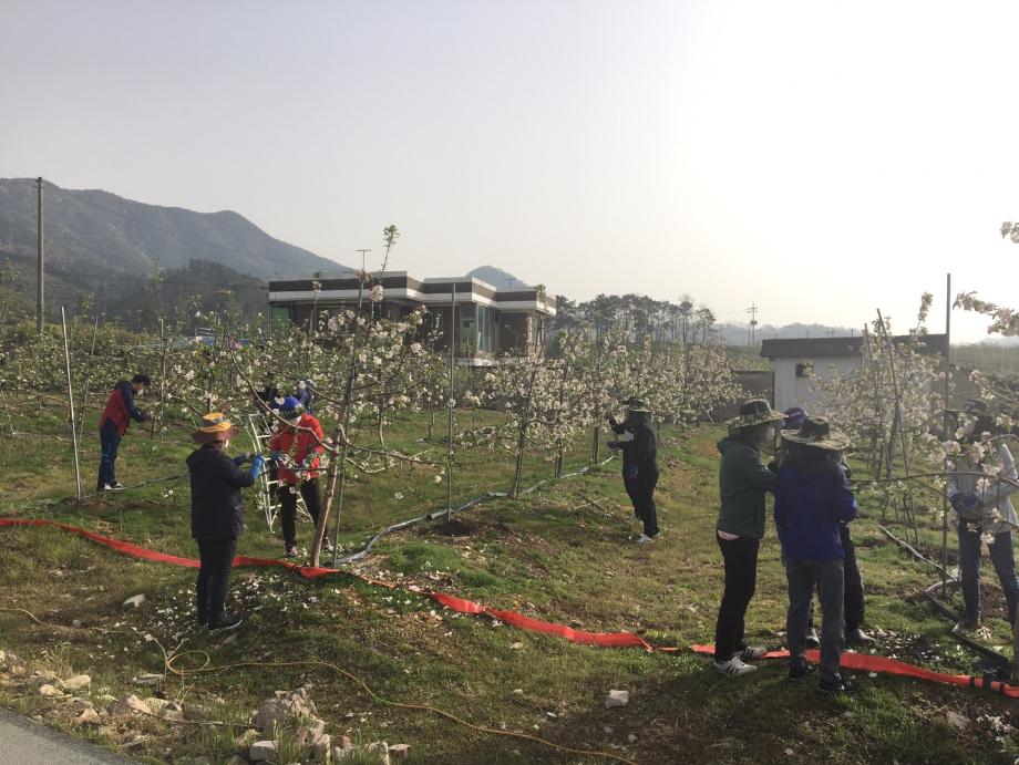 증평군 행정과 직원 20여명은 지난 17일, 18일 이른 아침부터 증평읍 연탄리 일원의 과수 농가를 방문해 생산적 일손봉사 활동을 실시했다.