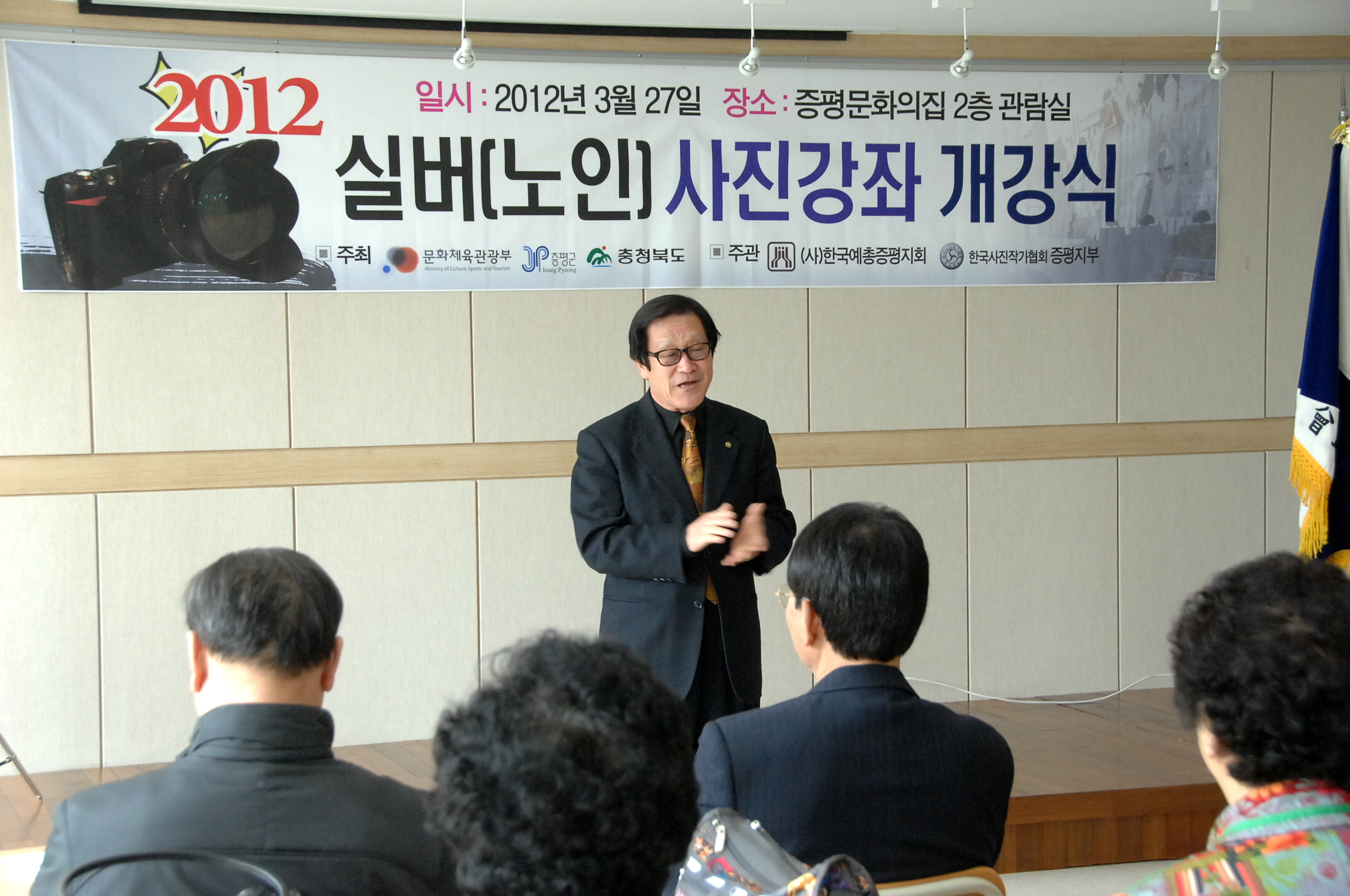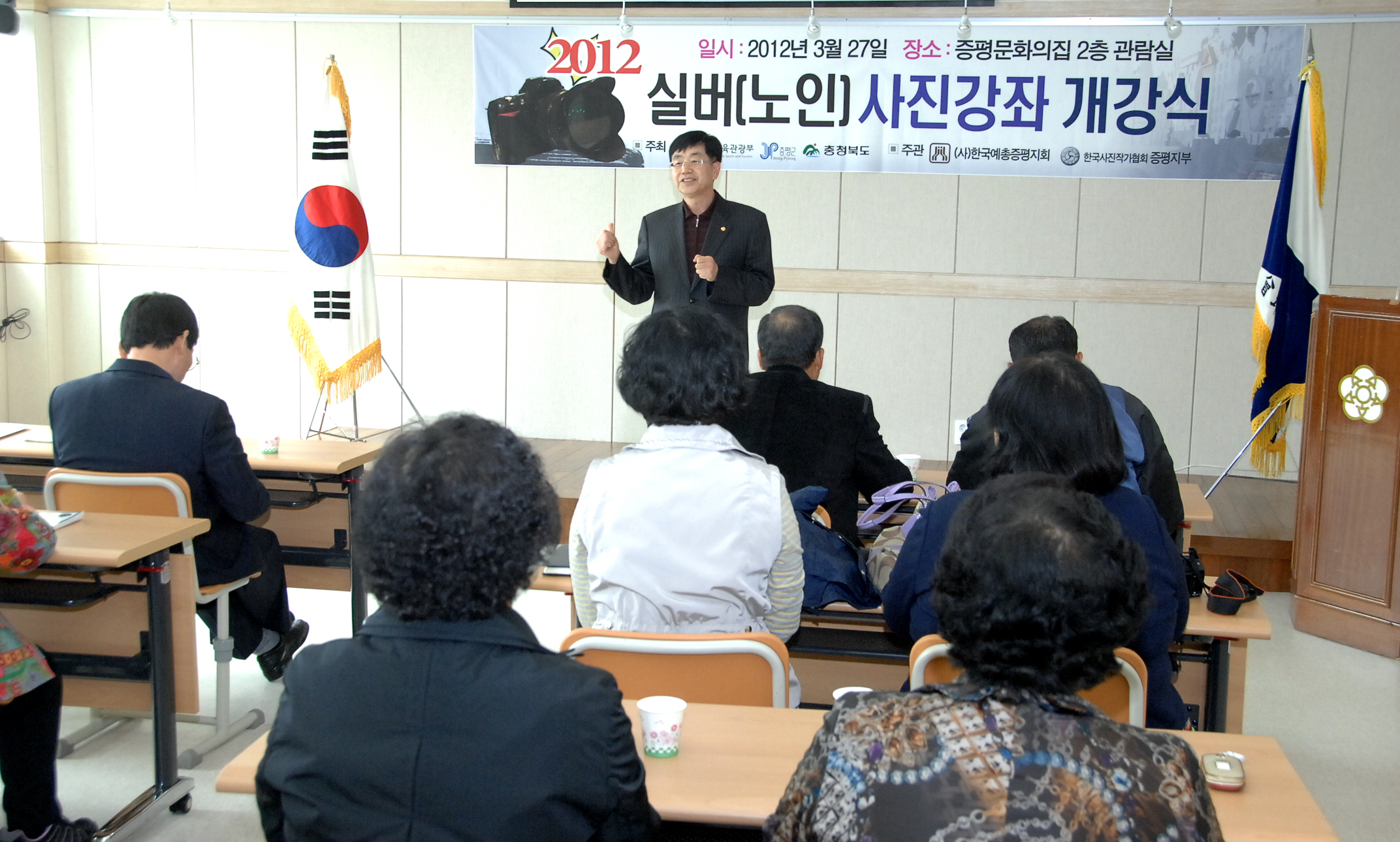 한국예술문화단체총연합회증평지회(회장 김장응)에서 운영하는 실버사진강좌 개강식이 27일 오후 1시 증평문화센터에서 수강생 및 증평예총 관계자 등 20여명이 참석한 가운데 열렸다. [보도자료실 참조]