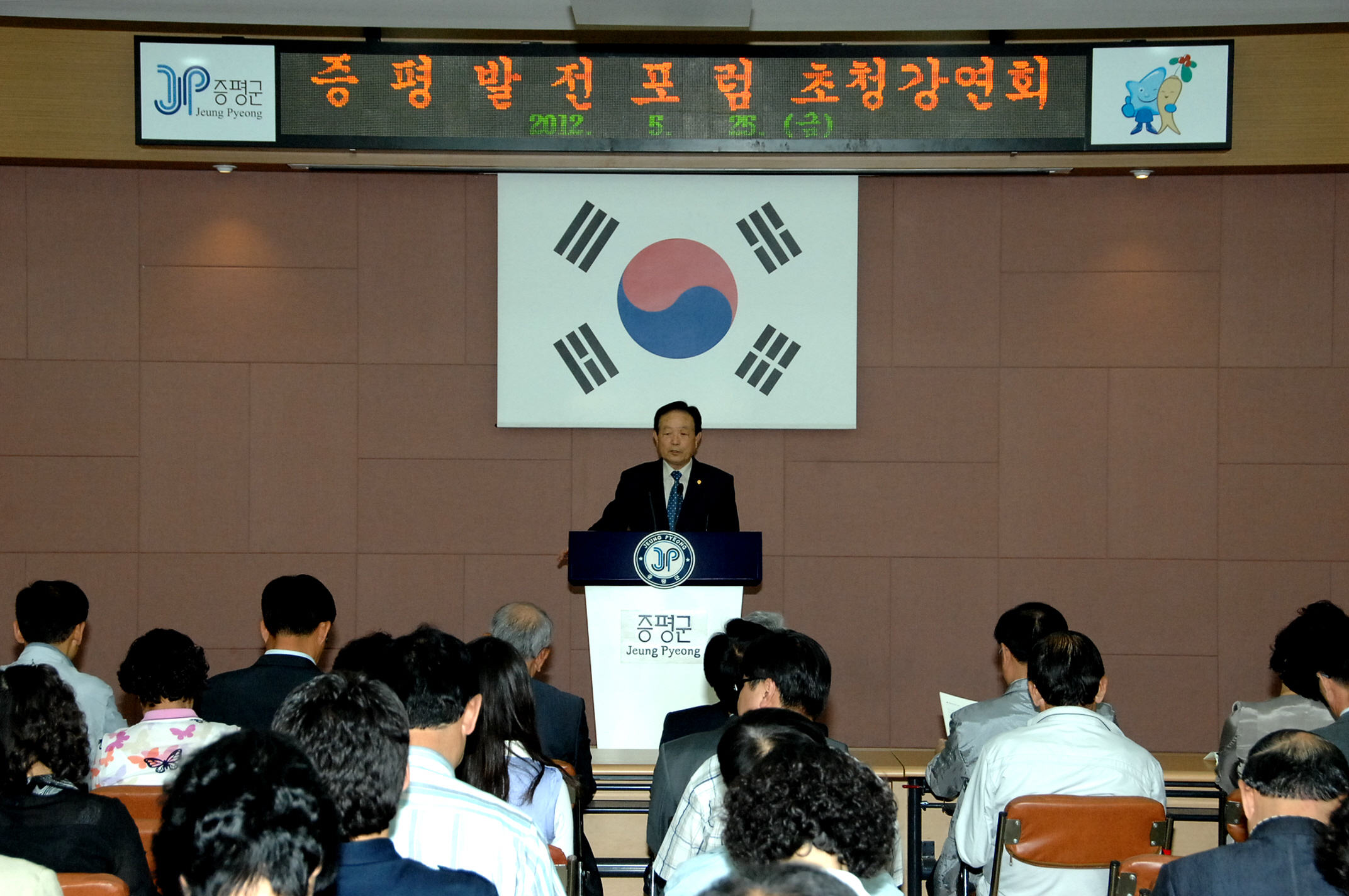 증평발전포럼(회장 김기환)은 25일 오후 2시 증평군청 대회의실에서 증평발전포럼 회원, 군민, 공무원 등 100여명이 참석한 가운데 ‘증평 관광의 경쟁력 제고’를 주제로 강연회를 개최했다. [보도자료실 참조]