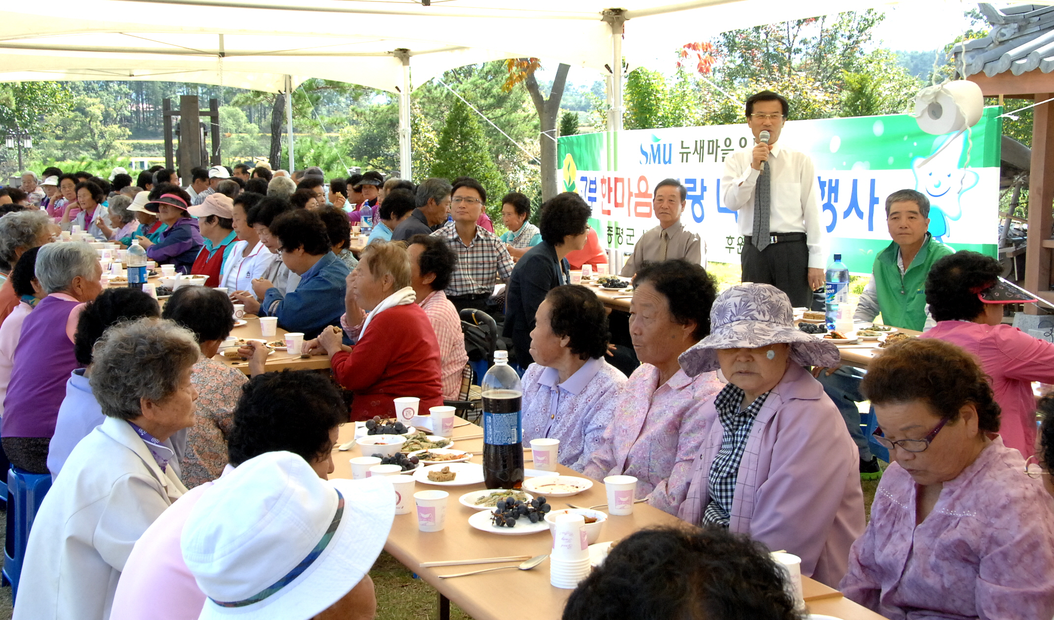 증평군새마을부녀회(회장 김묘현)는 4일 오전 11시 증평읍 남하리에 위치한 증평민속체험박물관에서 읍·면 독거노인을 비롯한 어르신 100여명을 모시고 고부한마음 나누기 행사를 개최했다.[보도자료실 참조]