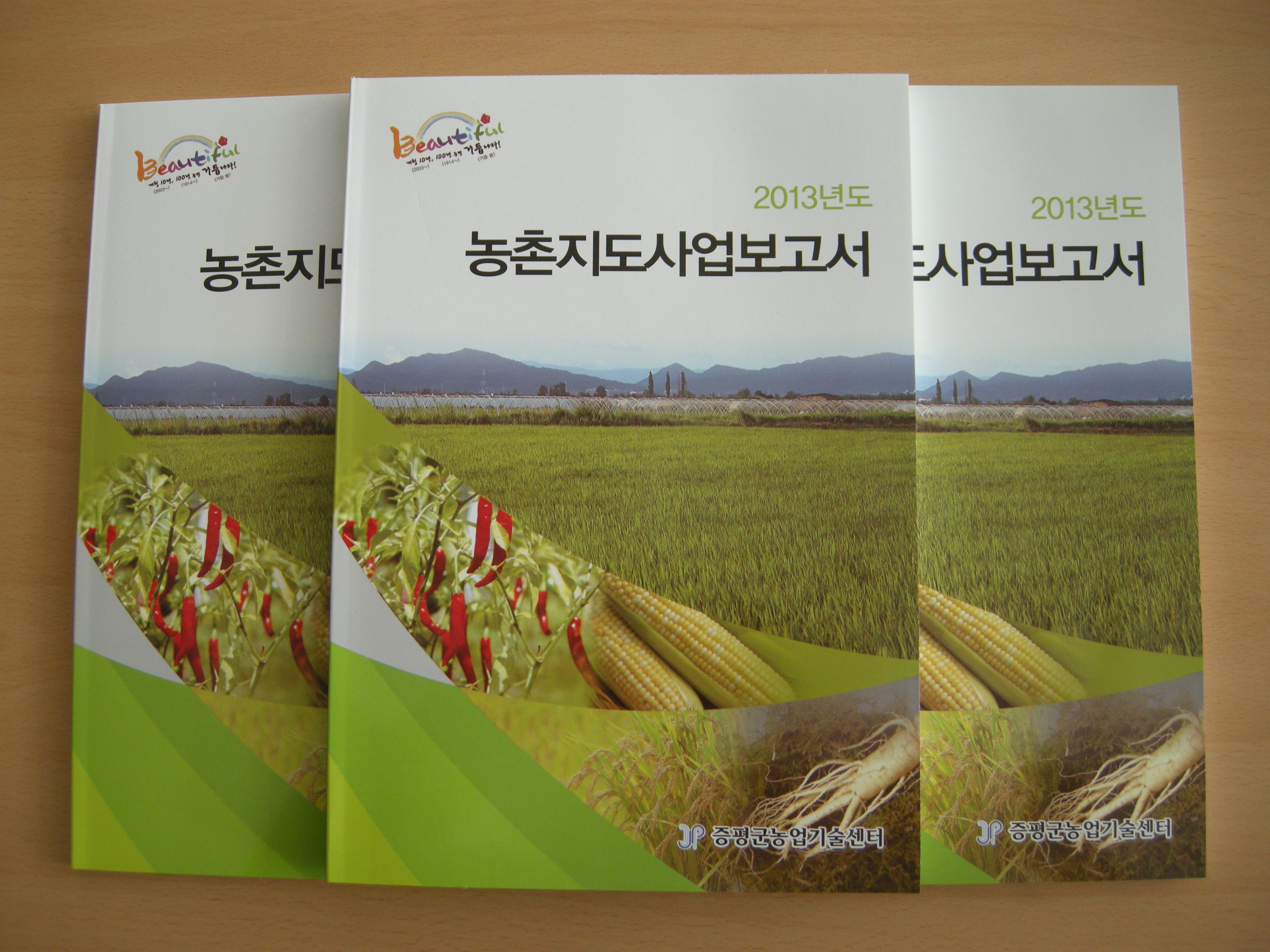 증평군농업기술센터(소장 김동구)는 지난 2013년도에 풍요롭고 경쟁력 있는 농업 실현을 비전으로 강소농 육성과 수요자중심 안전 농산물생산기술보급을 목표로 추진한 농촌지도사업 전반에 대한 내용을 보고서로 제작 배포해 농업인들에게 좋은 반응을 얻고 있다. [증평보도자료실 참조]