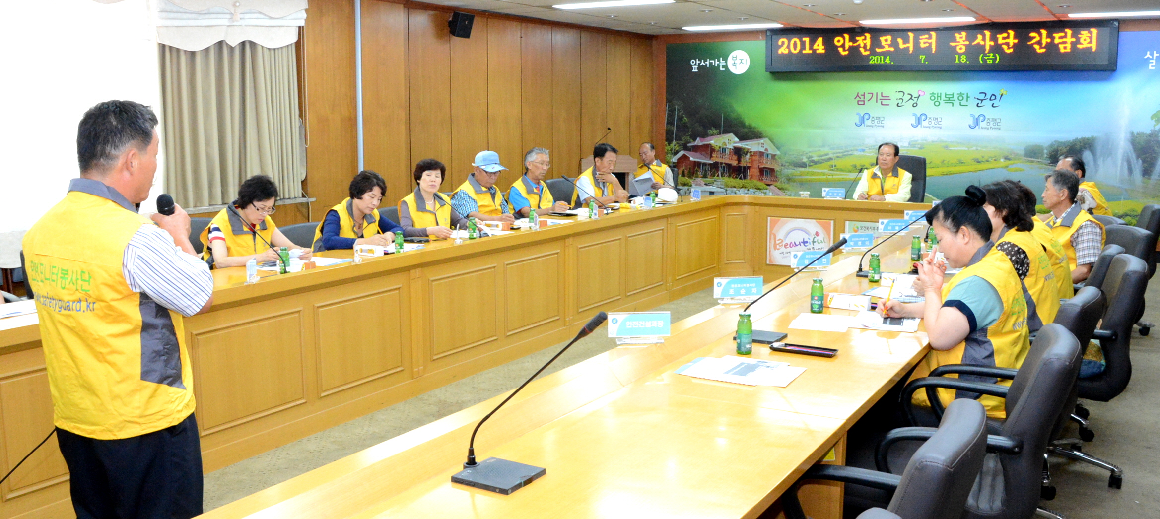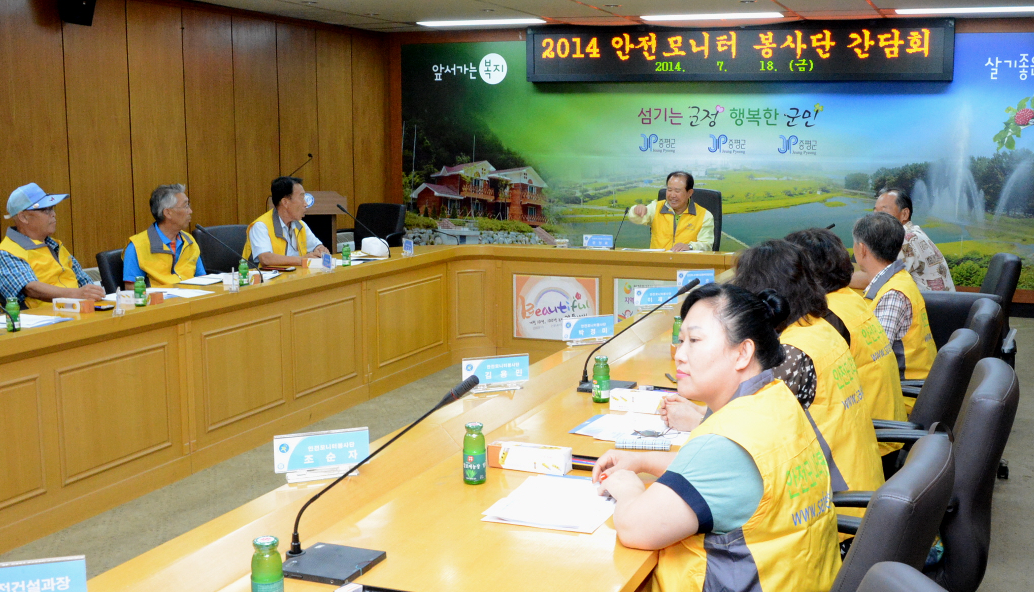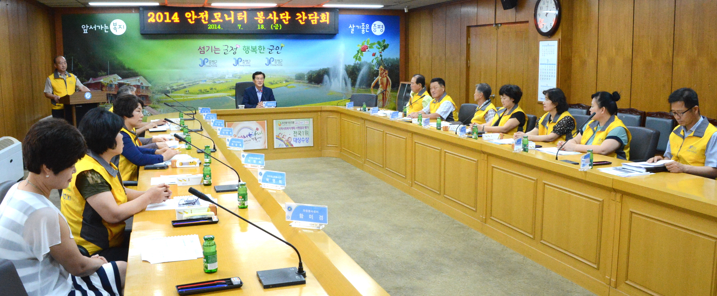 증평군 안전모니터봉사단은 18일 오후2시 군청 소회의실에서 안전모니터봉사단의 운영 활성화와 역량 강화를 위한 ‘2014년 안전모니터봉사단 간담회’를 개최했다. [보도자료실 참조]