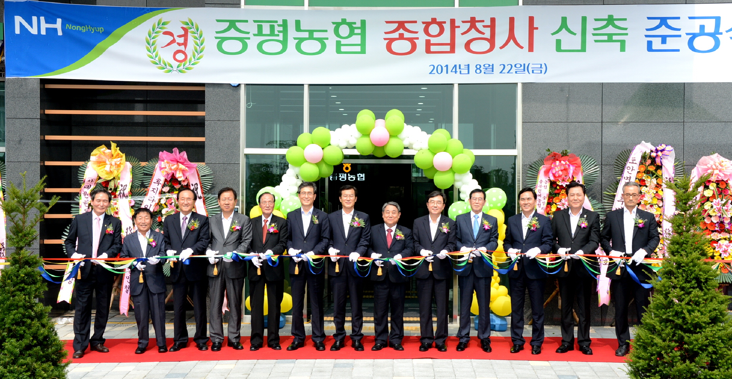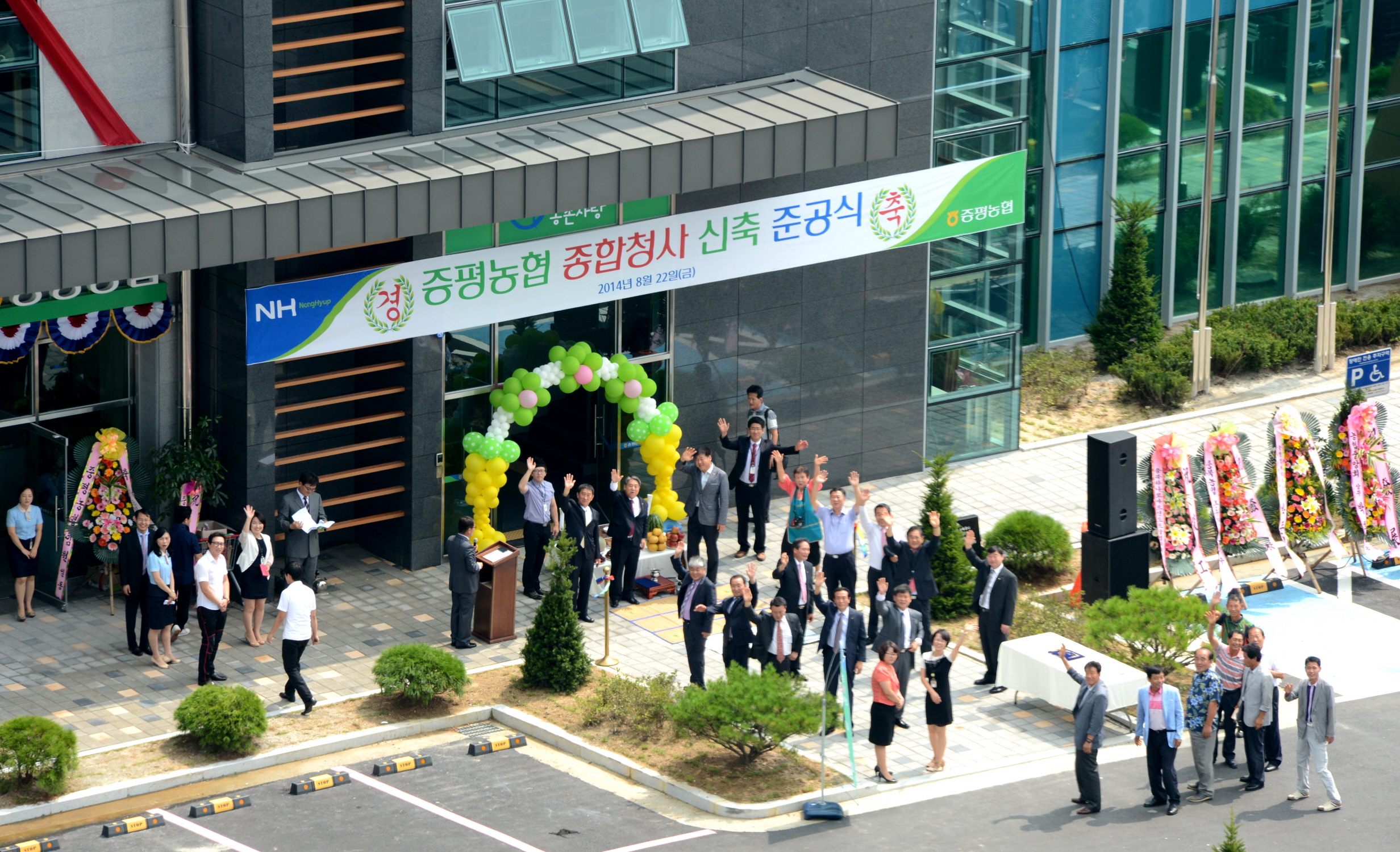 증평농협(조합장 김규호)은 22일 오후 2시 증평읍 광장로 27 증평군립도서관 옆에 위치한 신사옥에서 금융점포·경제사업장, 하나로마트 등을 갖춘 현대식 신청사 준공식을 가졌다. [보도자료실 참조]