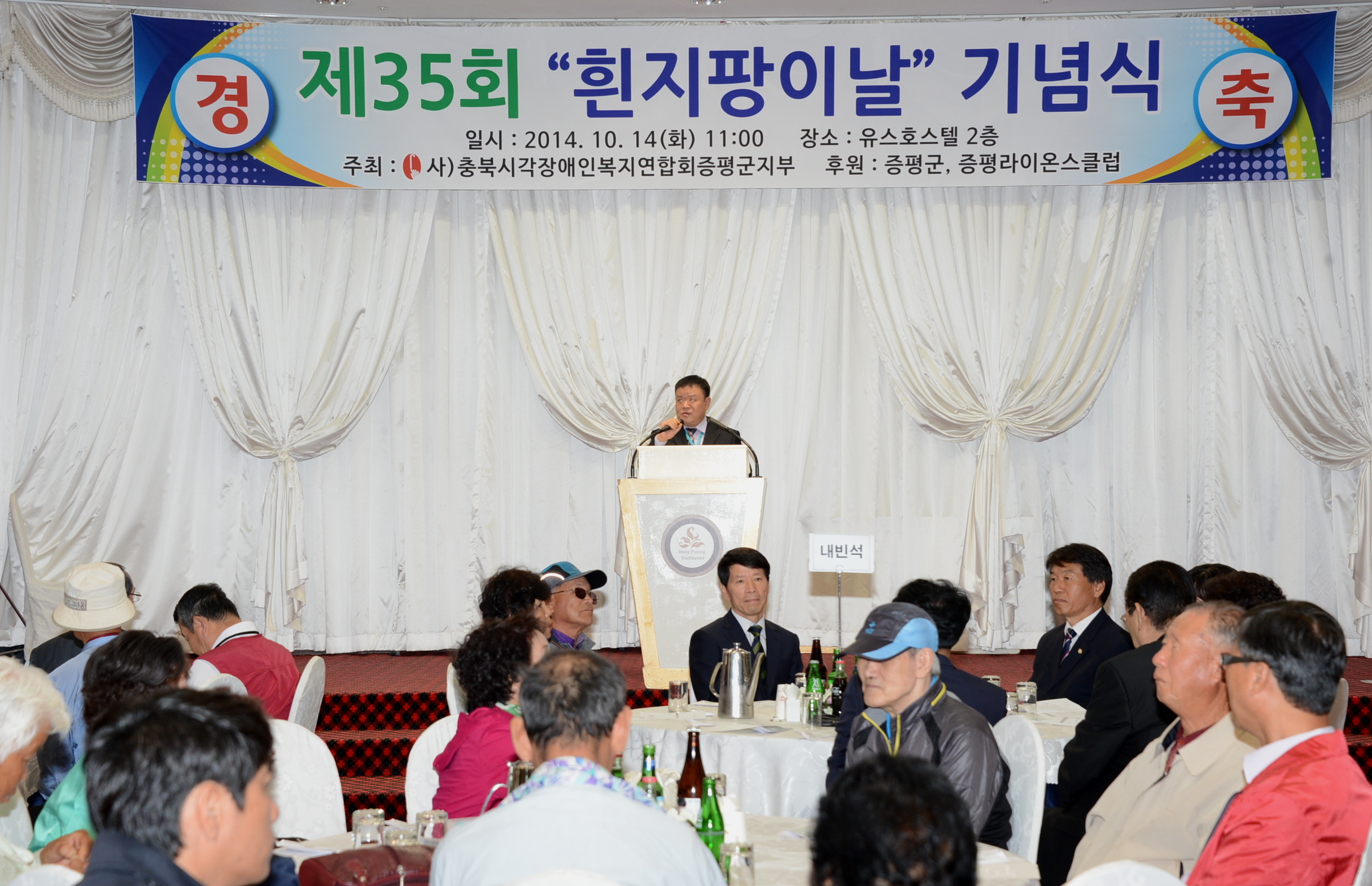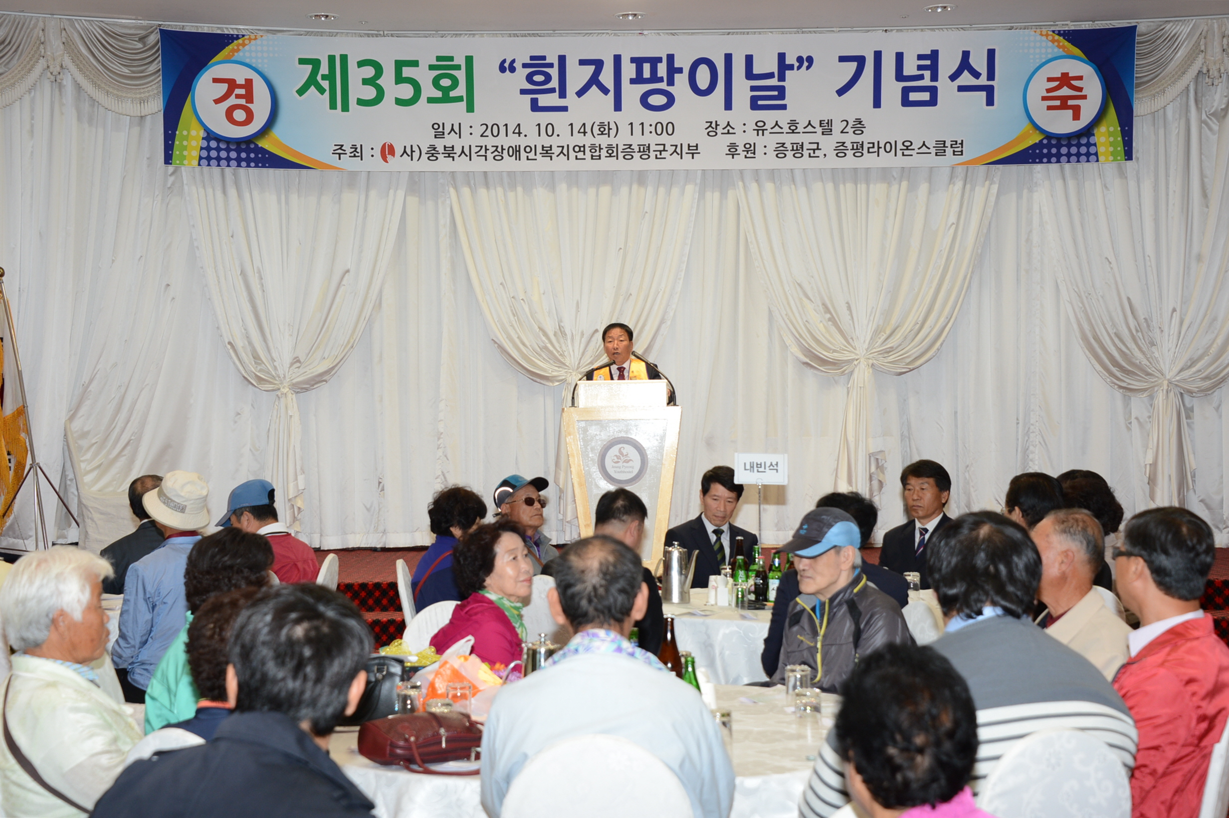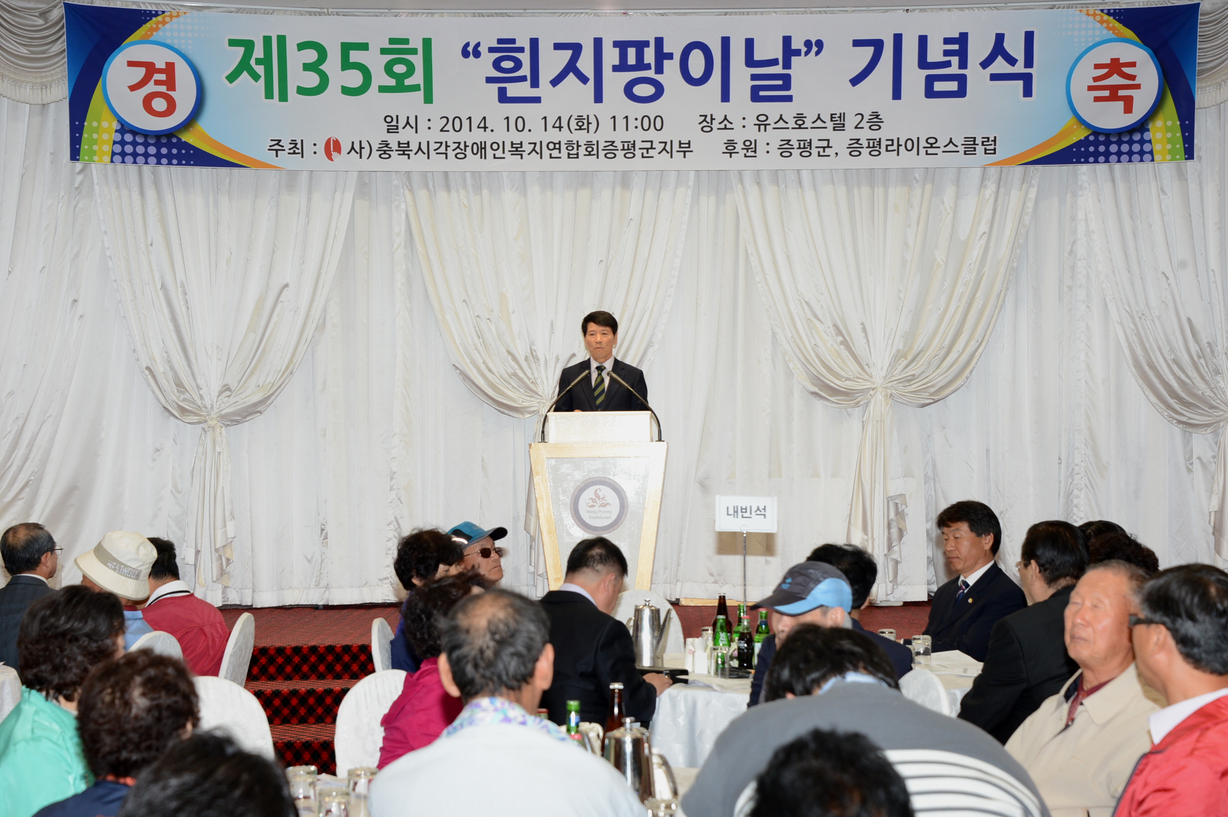 시각장애인의 사회 통합과 일반인의 시각장애인에 대한 올바른 이해, 시각장애인의 권익옹호와 복지증진을 위한 목적으로 제35회 흰지팡이의 날 기념행사가 14일 오전 11시 증평 유스호스텔 2층 연회장에서 열렸다. [보도자료실 참조]