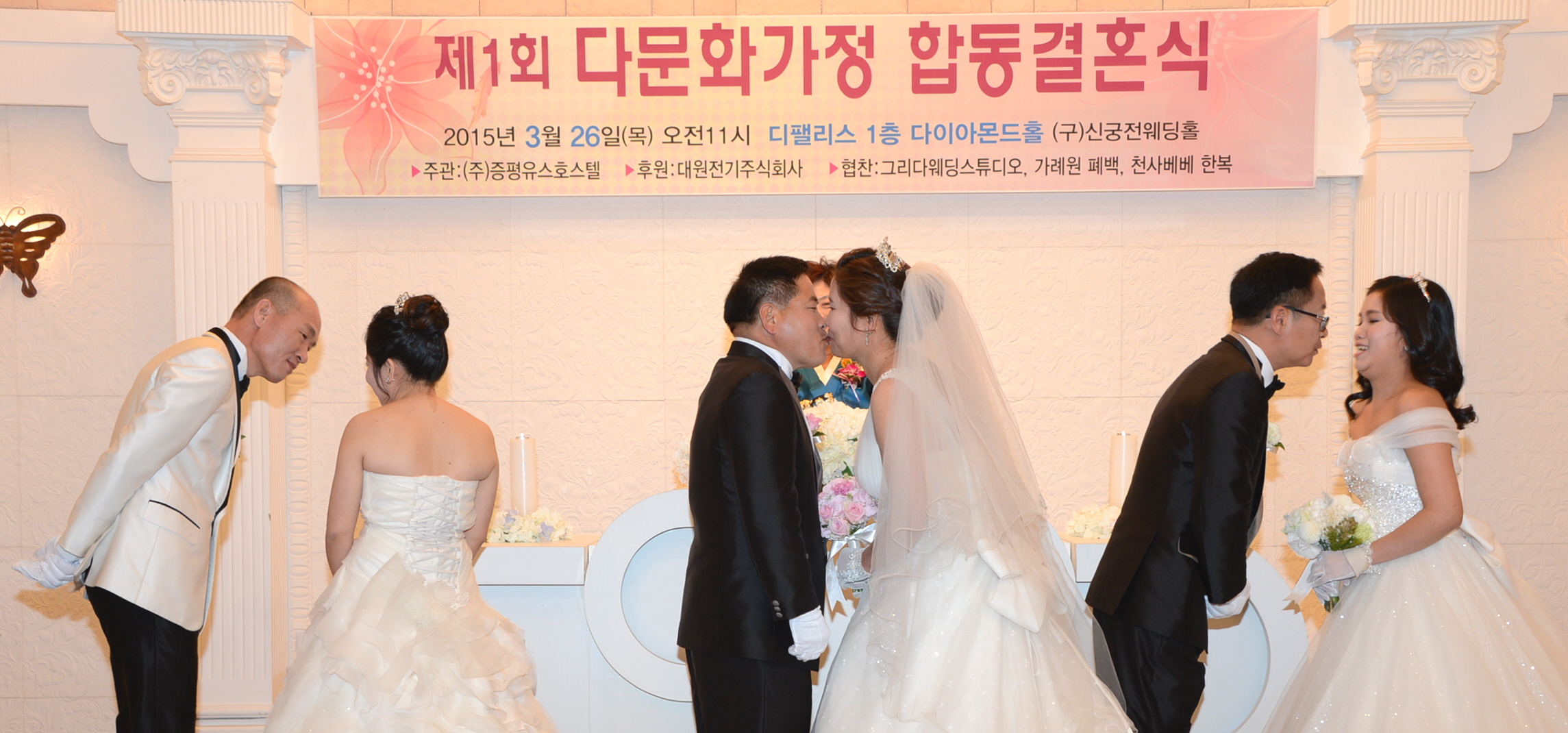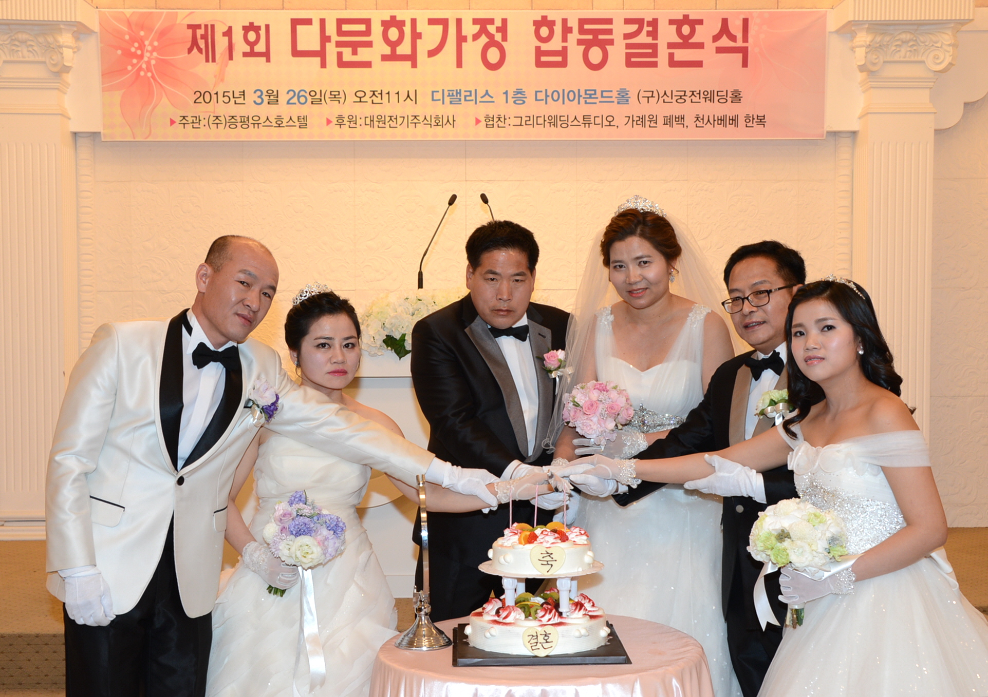 증평군에서는 26일 증평 디팰리스 웨딩홀에서 경제적인 어려움으로 결혼식을 올리지 못한 3쌍의 결혼 이주여성 부부의 합동결혼식이 개최됐다. [보도자료실 참조]