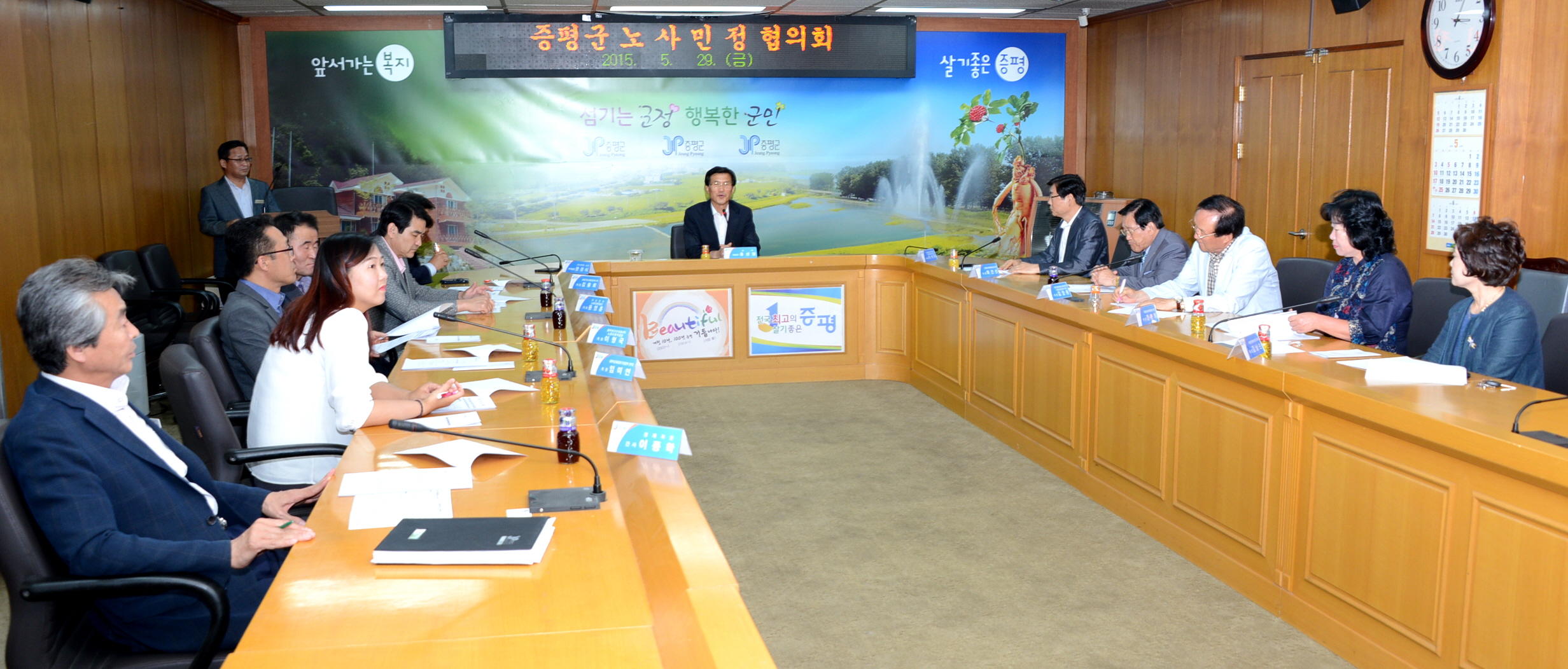 증평군은 29일 오후 3시 군청 소회의실에서 홍성열 증평군수, 윤영훈 두산전자 노조위원장, 김융회 기업인협의회 회장, 지방노동관서 관계자 등 13명이 참석한 가운데 일자리 창출 및 지역경제 활성화를 위한 노사민정 협의회를 개최했다.[보도자료실 참조]