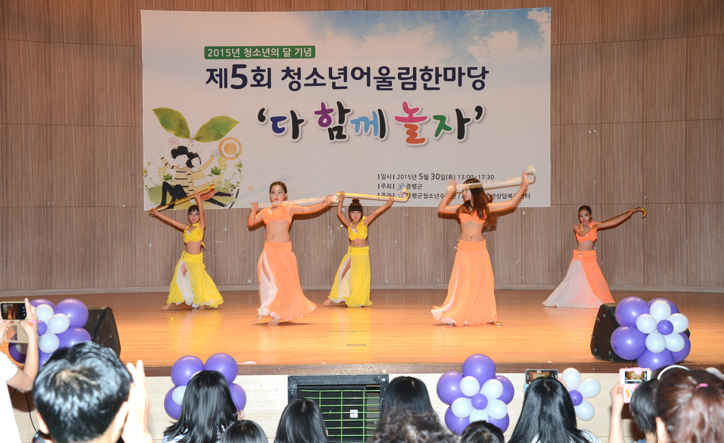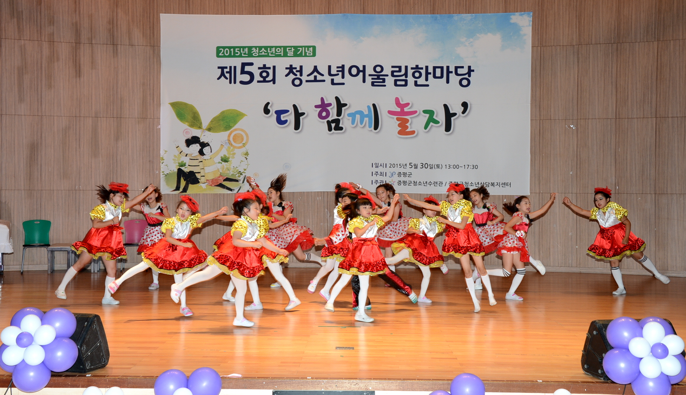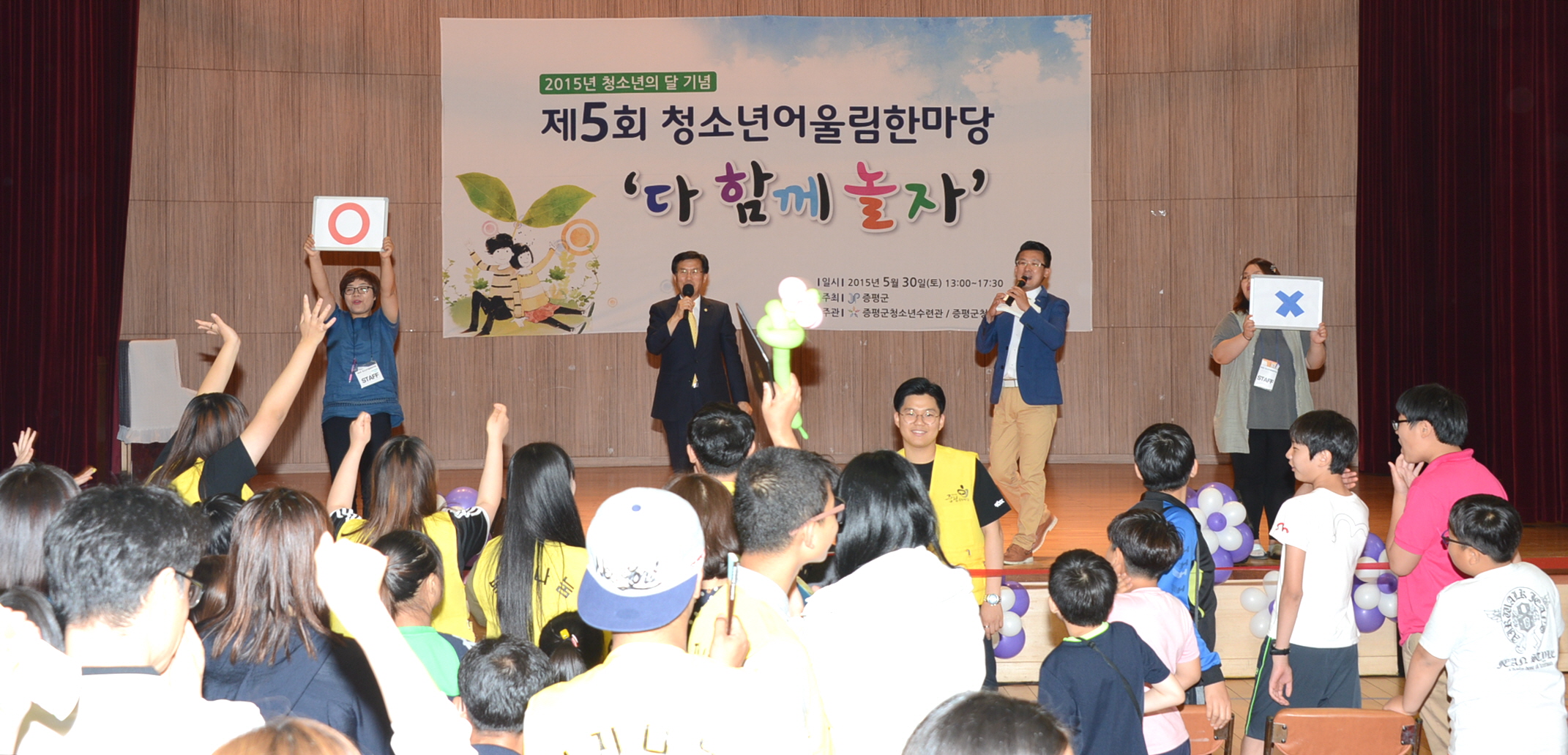 증평군청소년수련관·청소년상담복지센터(수련관장겸 센터장김병노)는 30일 오후 1시 30분 청소년과 가족 500여명이 참석한 가운데 청소년들의 끼와 열정을 발산할 수 있는 제5회 청소년어울림한마당을 증평군청소년수련관 다목적강당에서 열렸다.[보도자료실 참조]