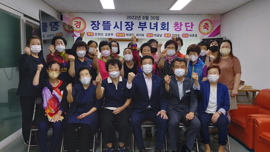 증평장뜰시장 부녀회(회장 조언년, 오은주)가 8월 30일 새롭게 창단하며, 장뜰시장 활성화에 큰 기여를 할 것으로 기대를 모으고 있다.