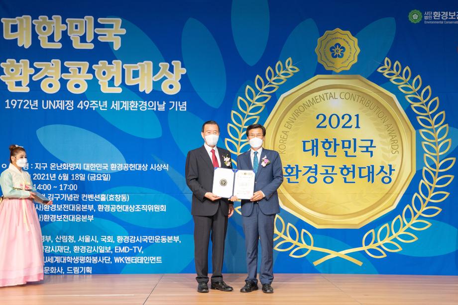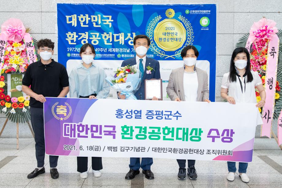 홍성열 군수가 18일 서울 백범 김구 기념관에서 열린「대한민국 환경공헌대상 시상식」에서 환경공헌 대상을 수상했다.