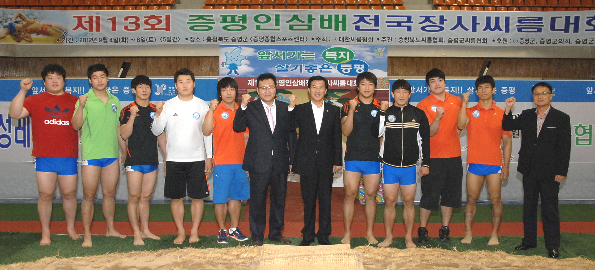 지난 4일 증평종합스포츠센터에서 개막돼 씨름판을 뜨겁게 달궜던 ‘제13회 증평인삼배 전국장사 씨름대회’가 8일 일반부 단체전 및 통일장사부 결승전 경기를 마지막으로 성황리에 막을 내렸다. [보도자료실 참조]
