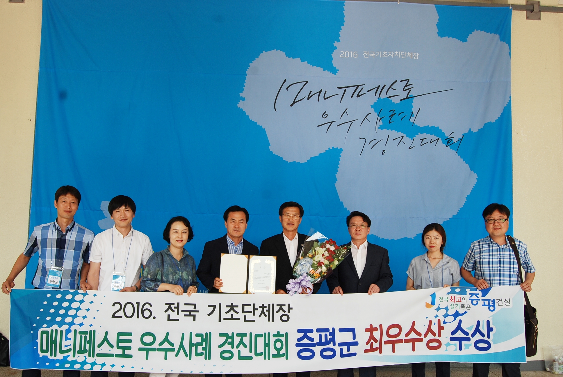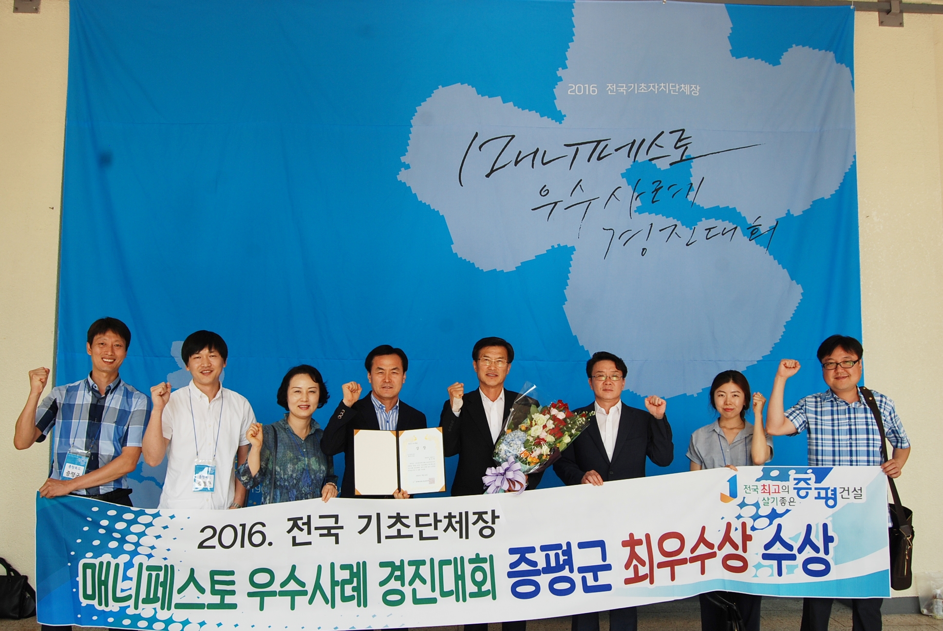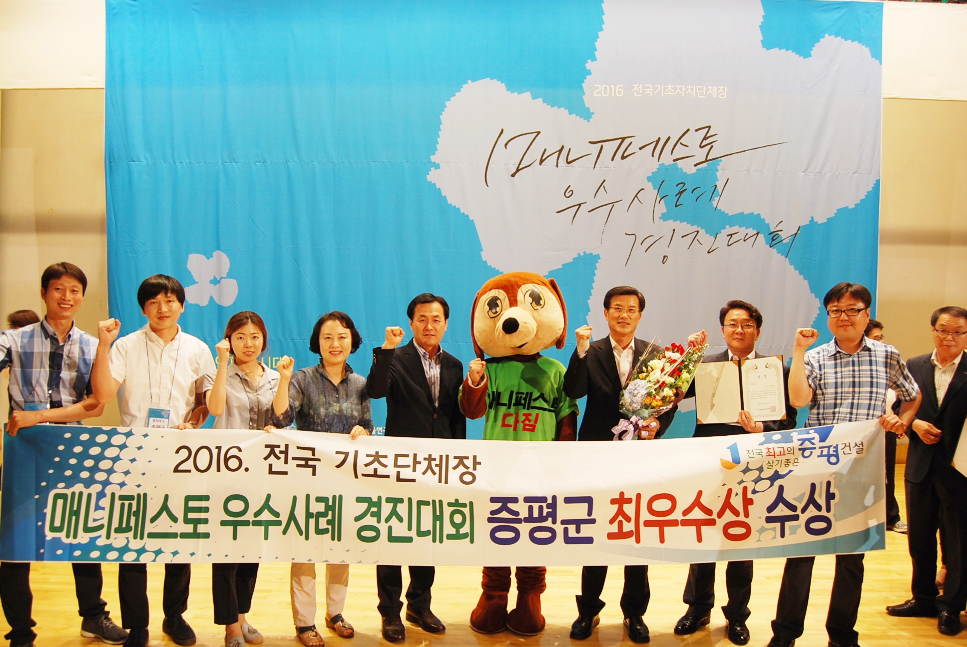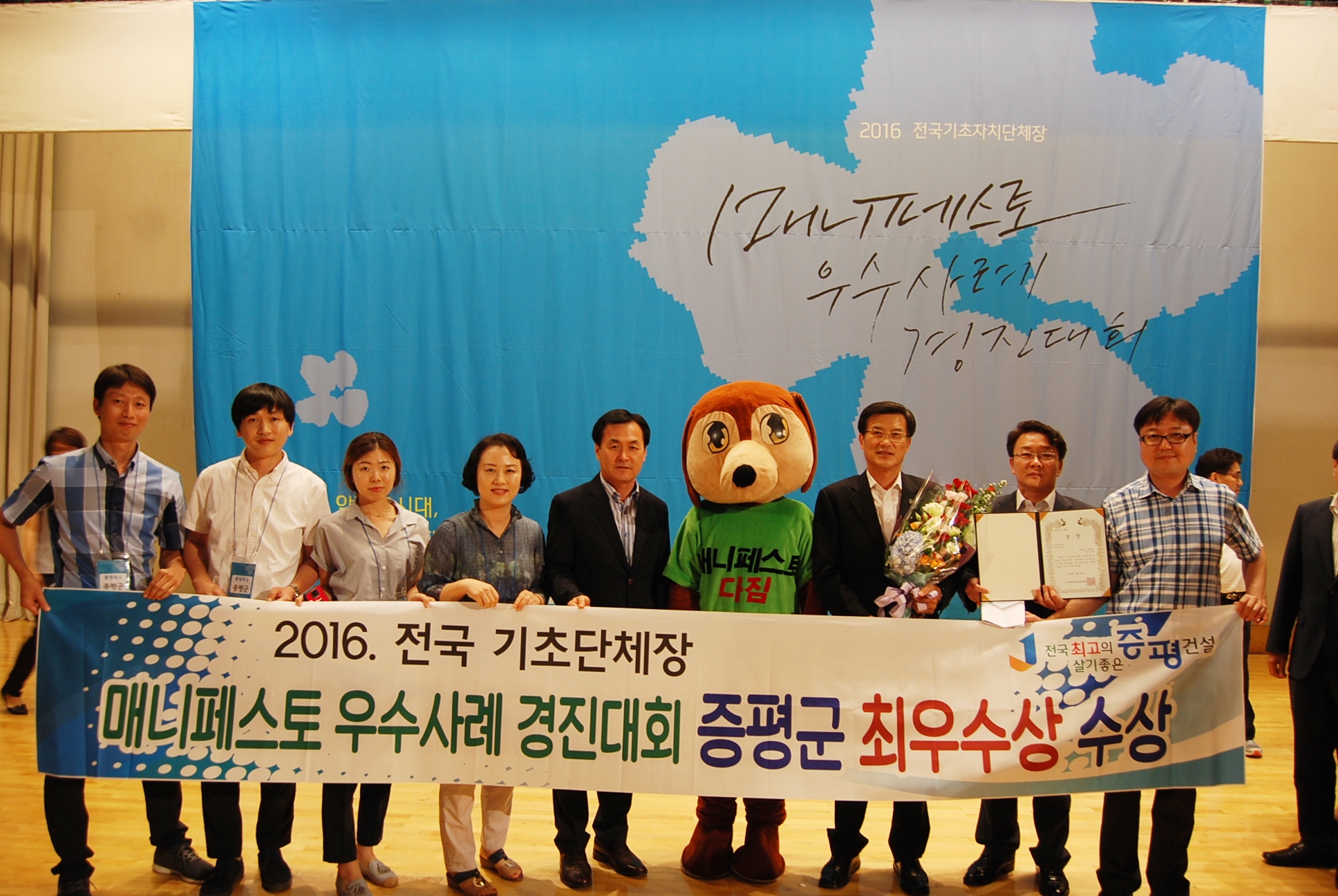 증평군은 한국매니페스토실천본부가 주관한 ‘2016 전국 기초단체장 매니페스토 우수사례 경진대회"에서 최우수상을 수상했다고 22일 밝혔다.