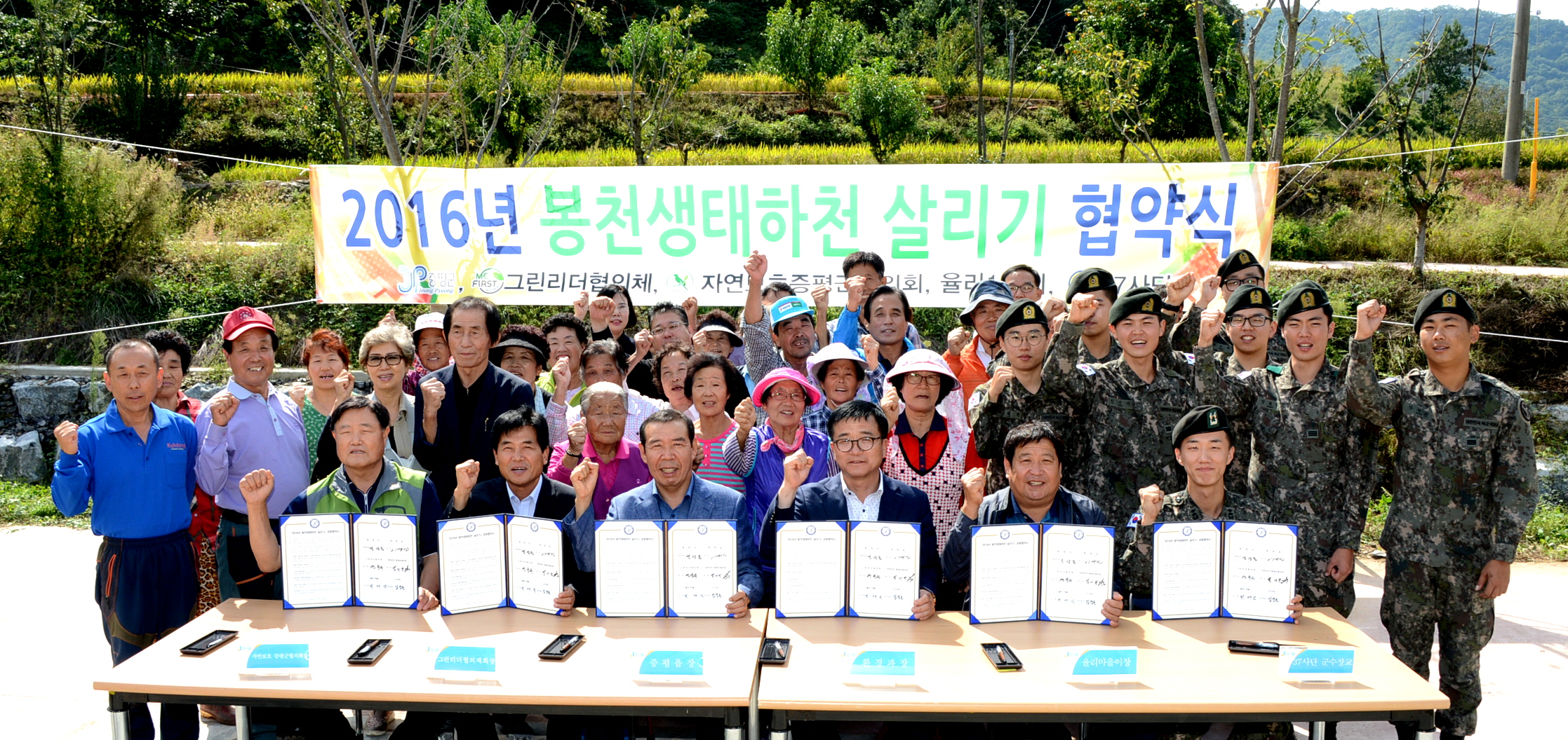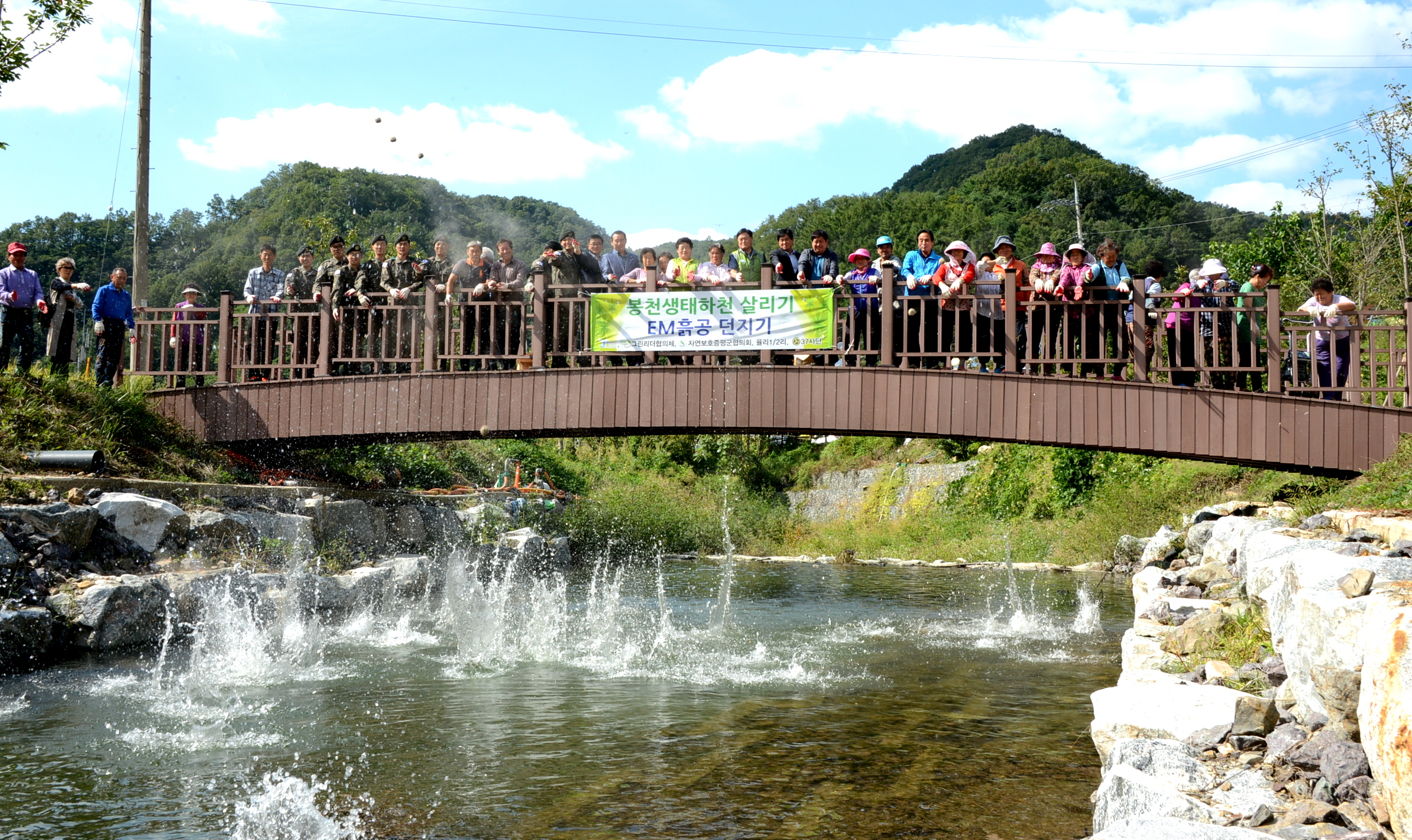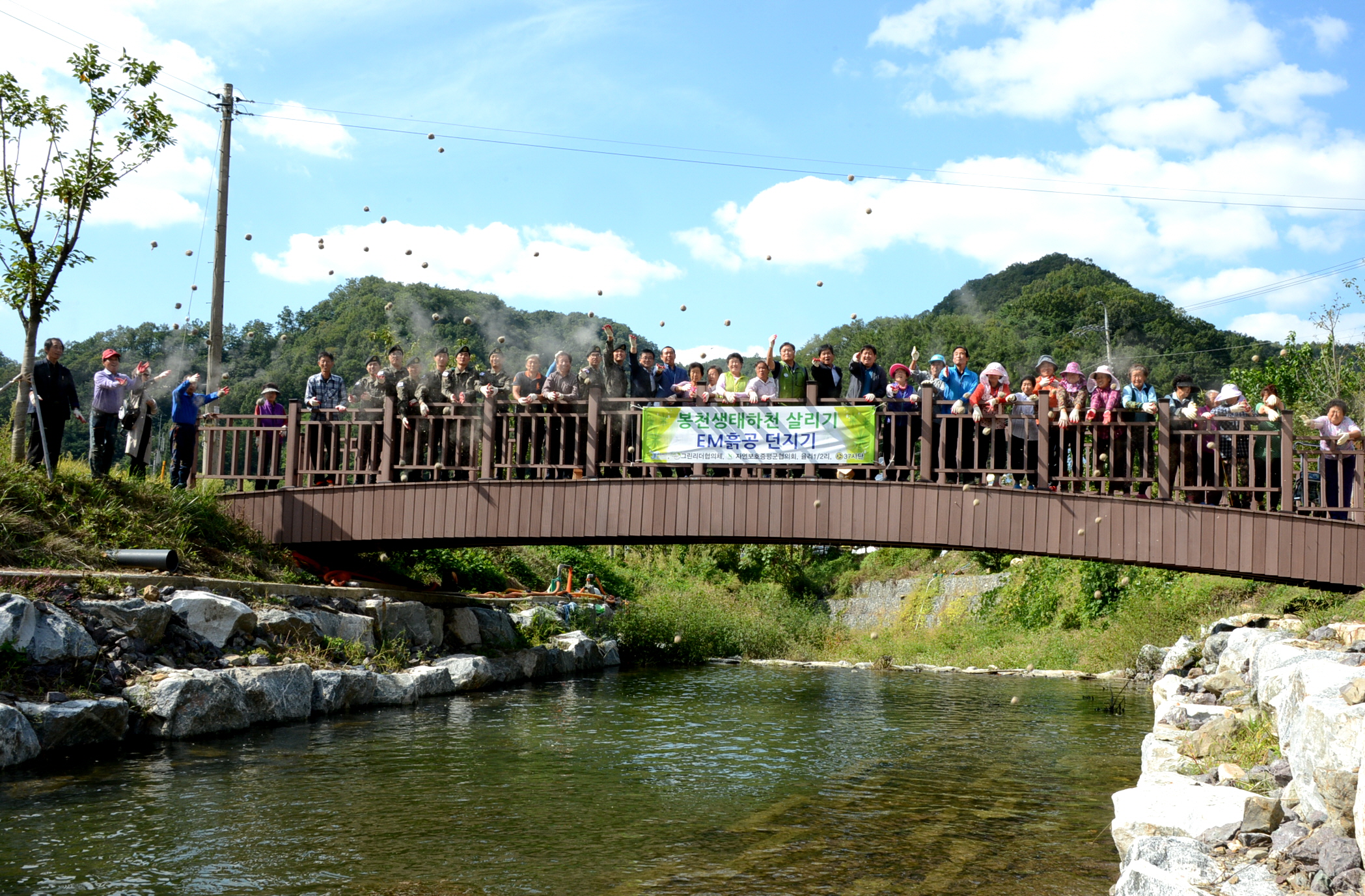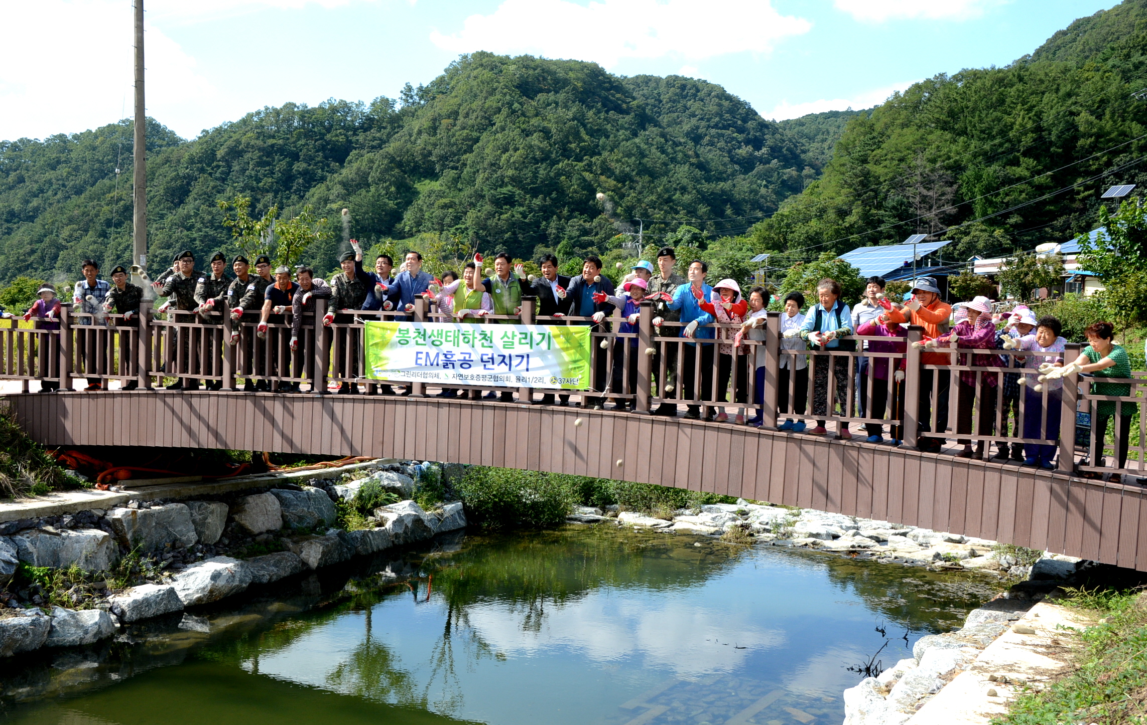 증평군은 지난 20일 증평읍 율리마을과 봉천생태하천살리기사업 민·관·군 협약식을 체결하고, EM 흙공던지기와 하천정화활동을 펼쳤다.(보도자료실 참조)