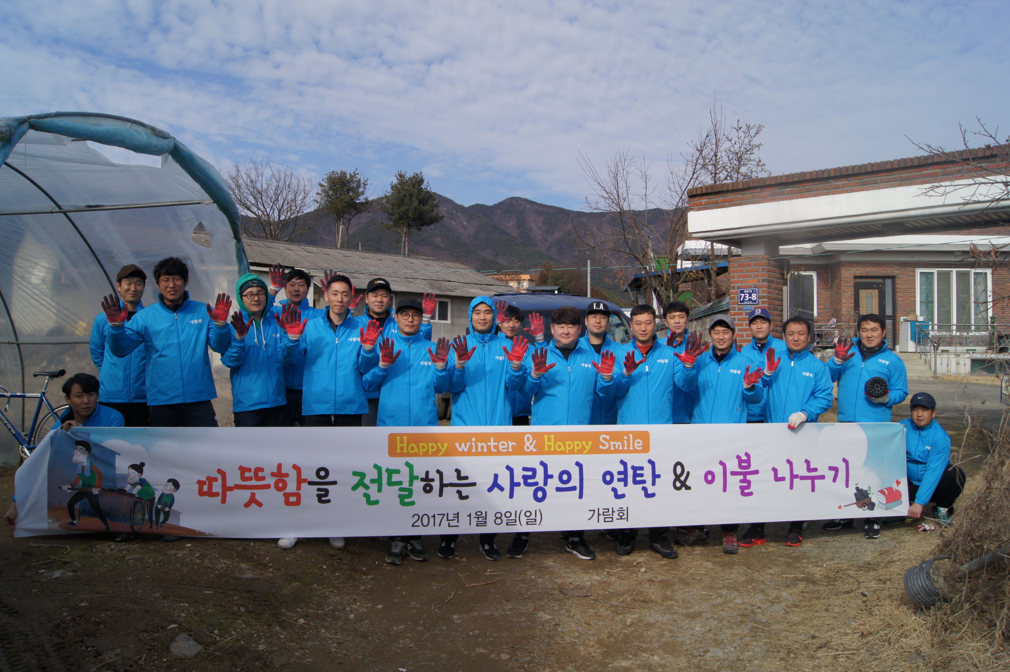 증평에 거주하는 청년 32명으로 구성된 모임인 가람회(회장 박광선)에서는 지역 내 생활이 어려운 이웃 15가구에 연탄 1,500장(87만원 상당)과 이불 10채(80만원 상당)를 전달했다.