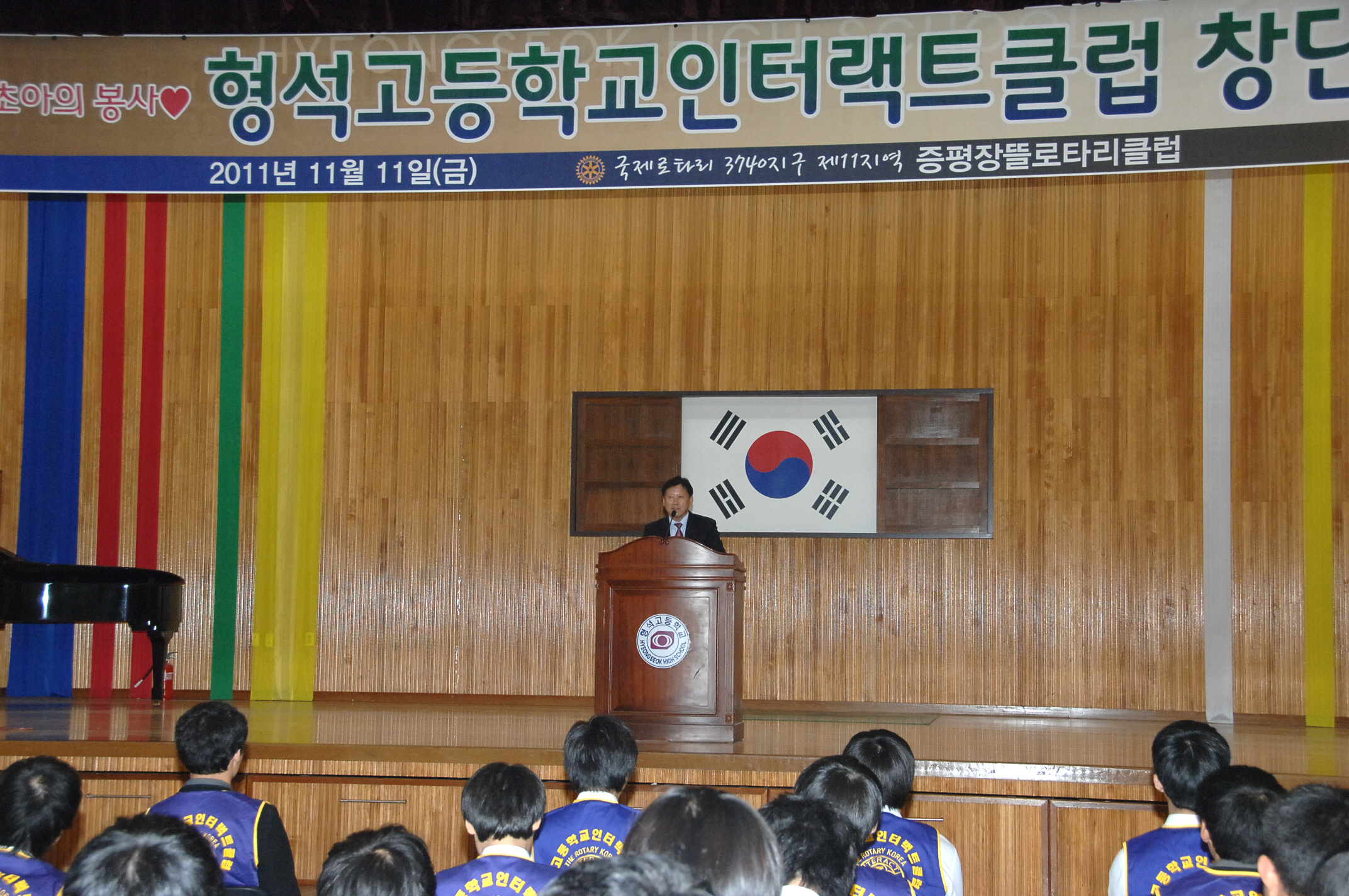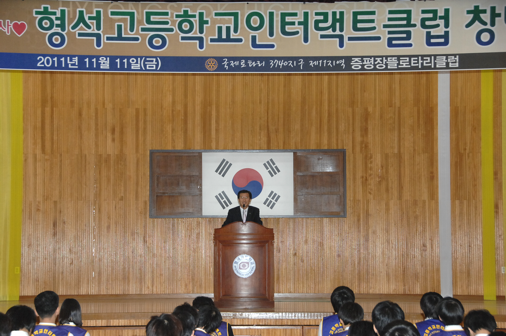 국제로타리 3740지구 제11지역 증평장뜰로타리(회장.주기영)은 11일 오후 2시30분 증평읍 미암리 형석고등학교 심우관에서 형석고등학교 ‘인터랙트 클럽’ 창단식을 가졌다.[보도자료실 참조]