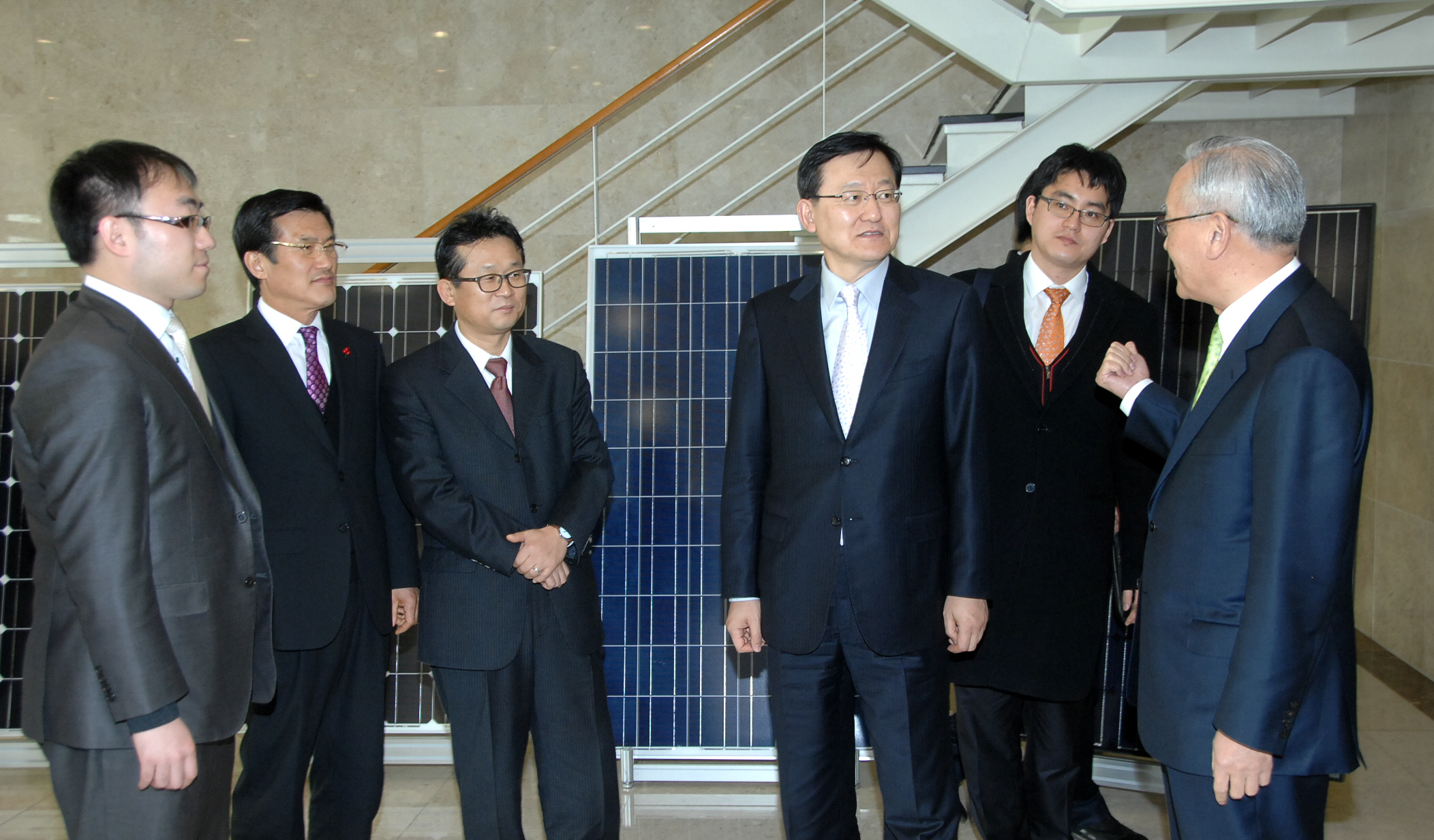 홍석우 지식경제부장관이 9일 오후3시 증평읍 미암리 (주)신성솔라에너지를 방문하여 공장 현황을 청취하고, 기업애로 사항에 대하여 관계자들과 환담한 후 공장 내부시설을 견학했다.