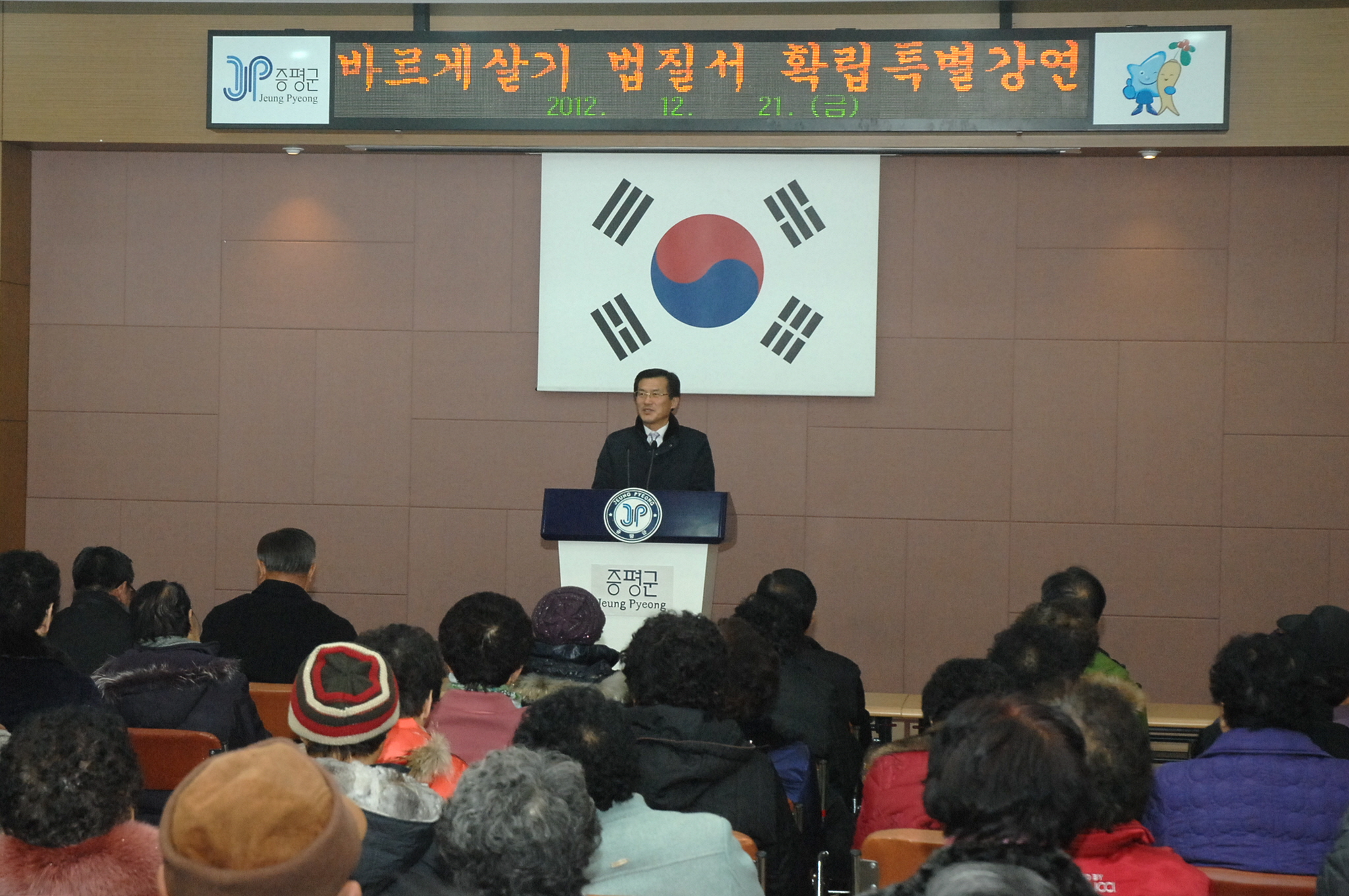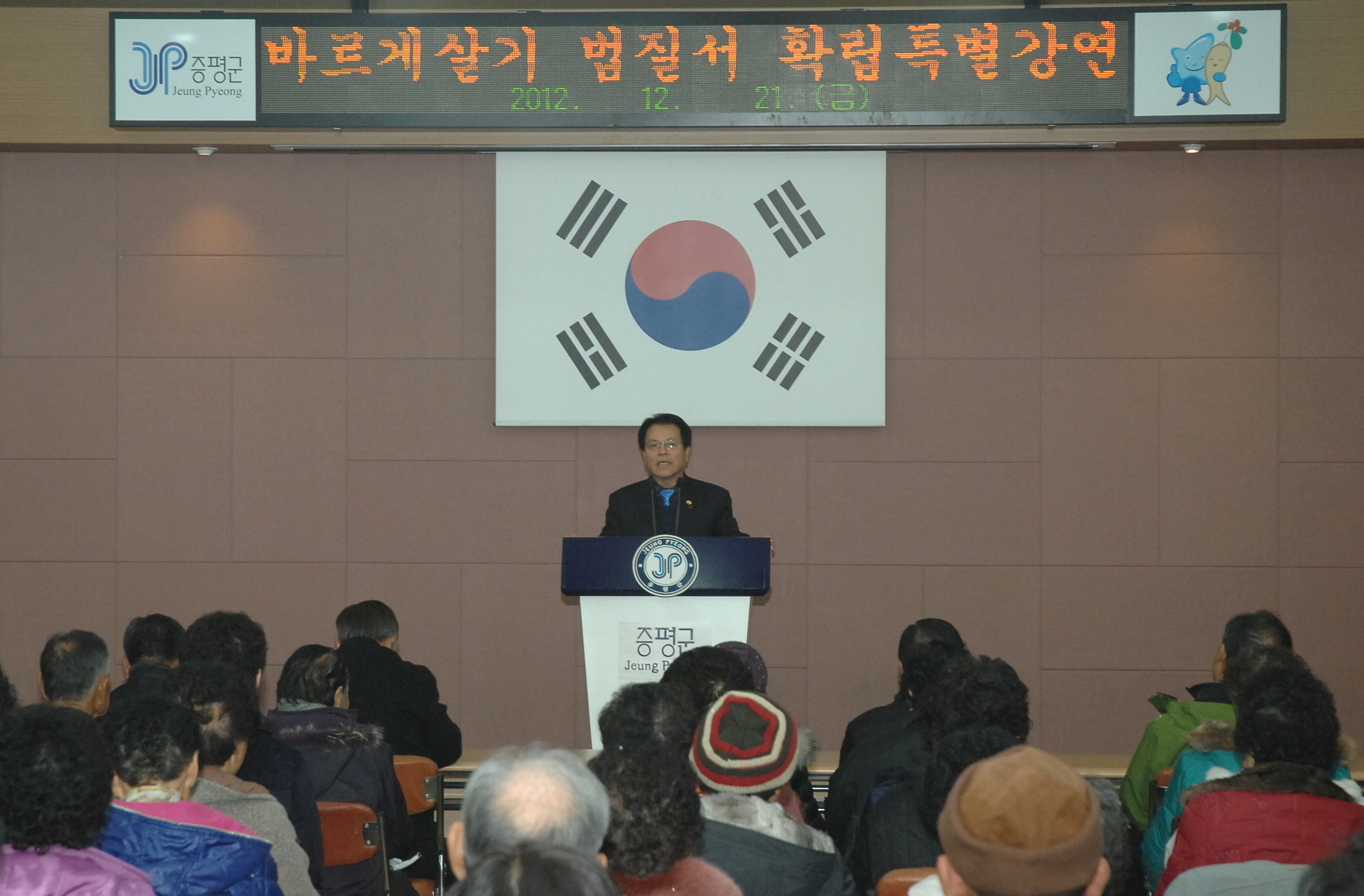 바르게살기운동증평군협의회는 21일 오후 1시 30분 군청 대회의실에서 ‘2012 바르게살기운동 법질서 확립 특별강연회’를 개최했다. [보도자료실 참조]