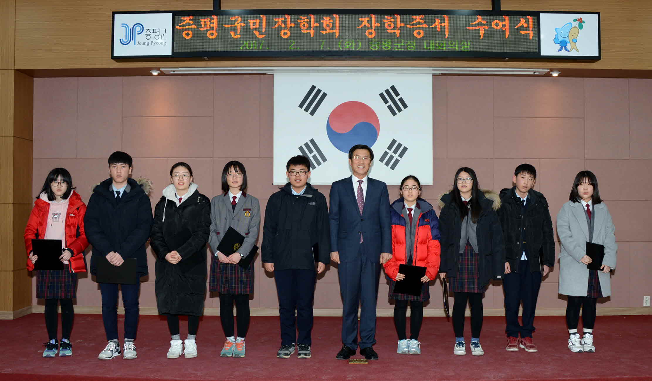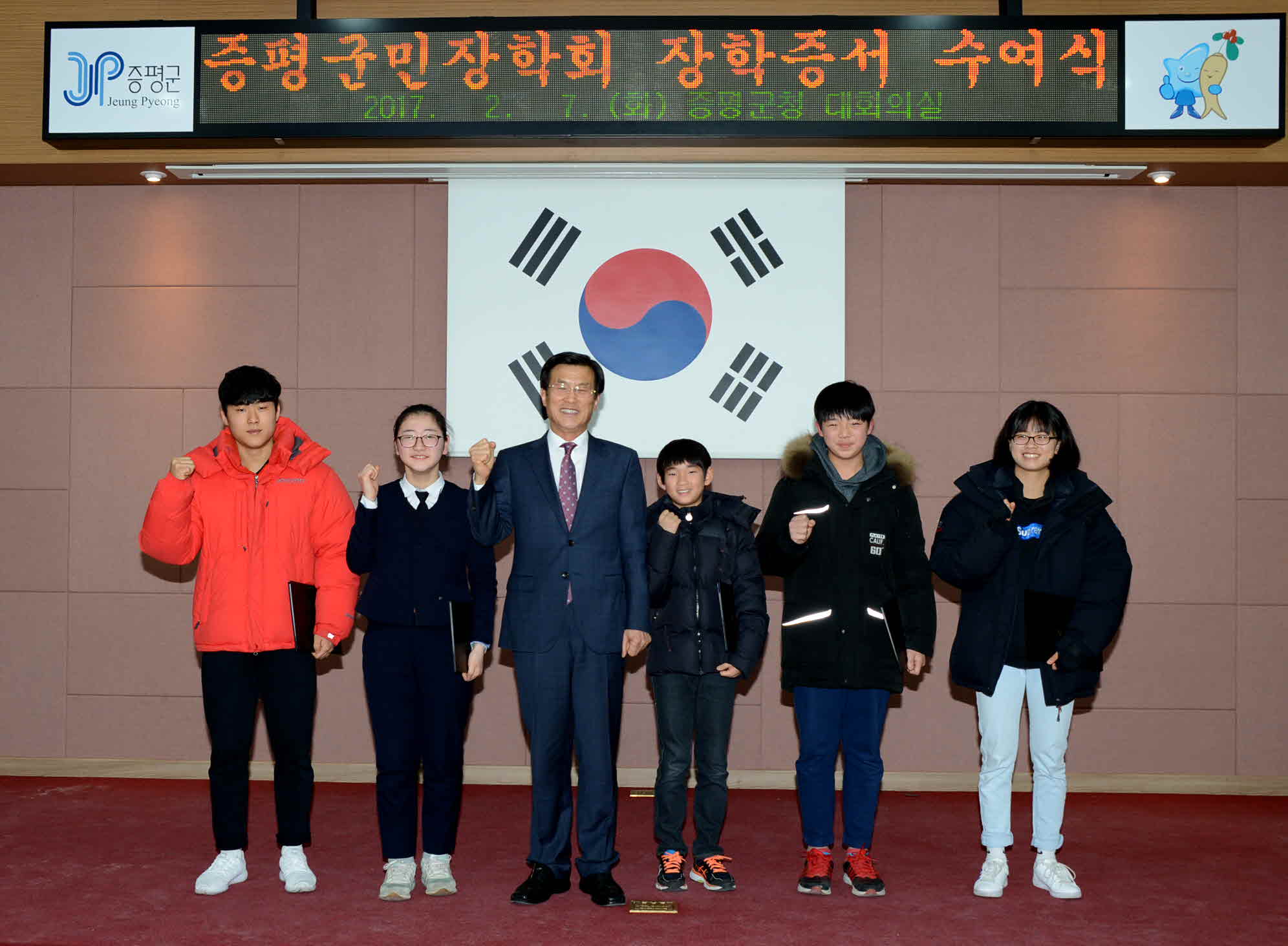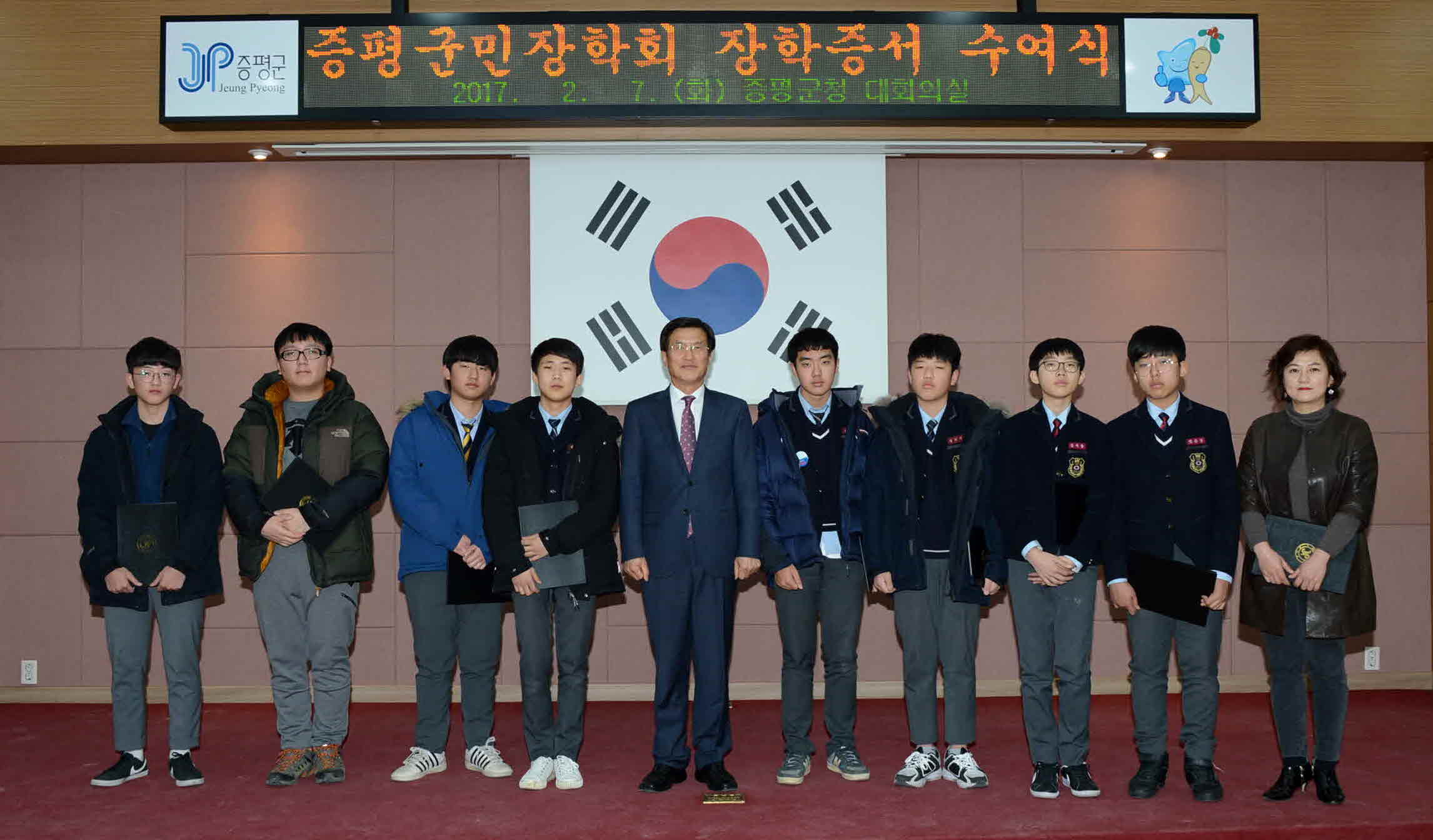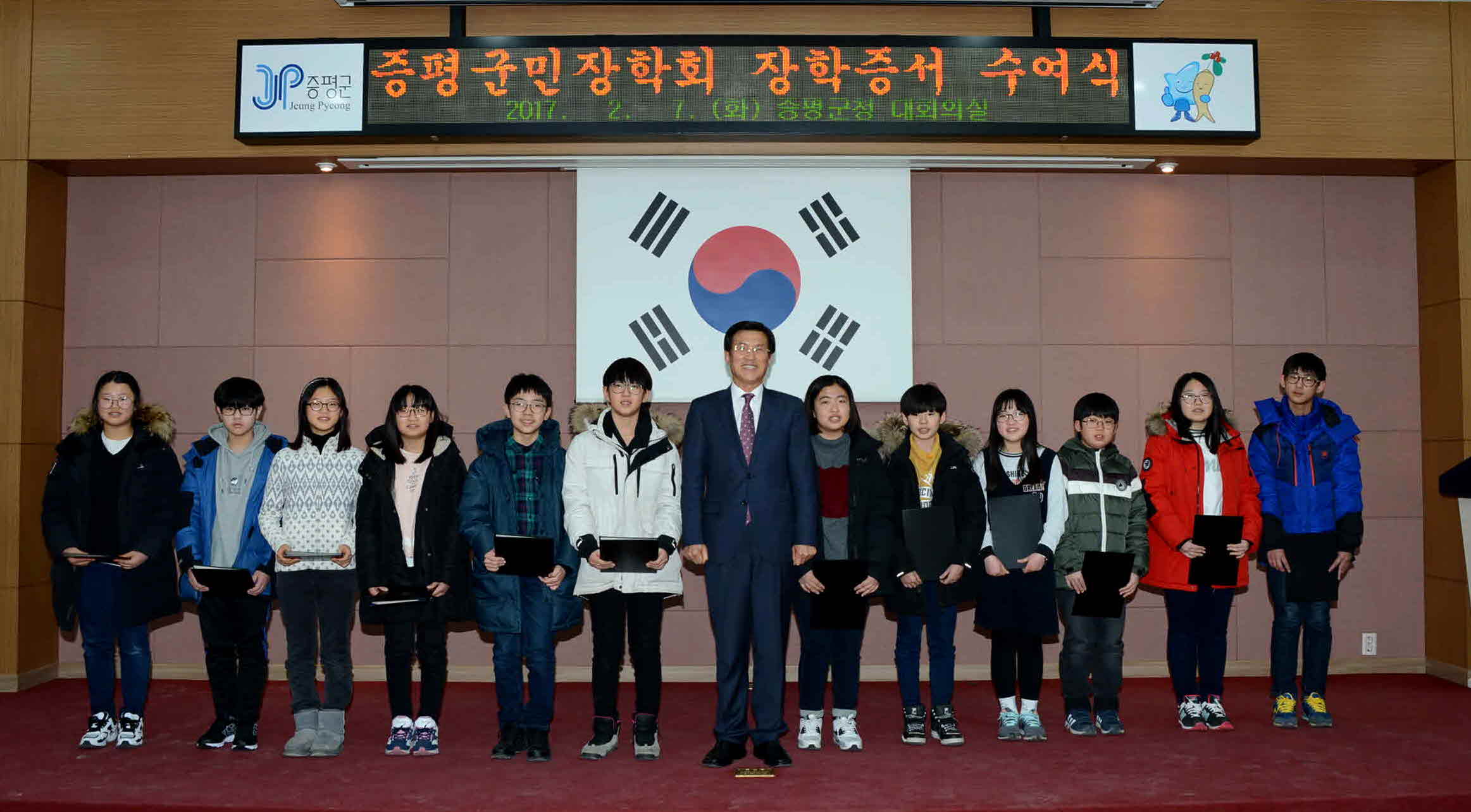 2017년 (재)증평군민장학회(이사장.홍성열증평군수) 장학증서 수여식이 7일 오후4시 군청 2층 회의실에서 열렸다.