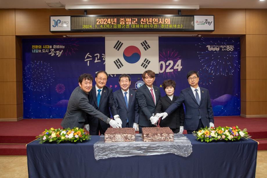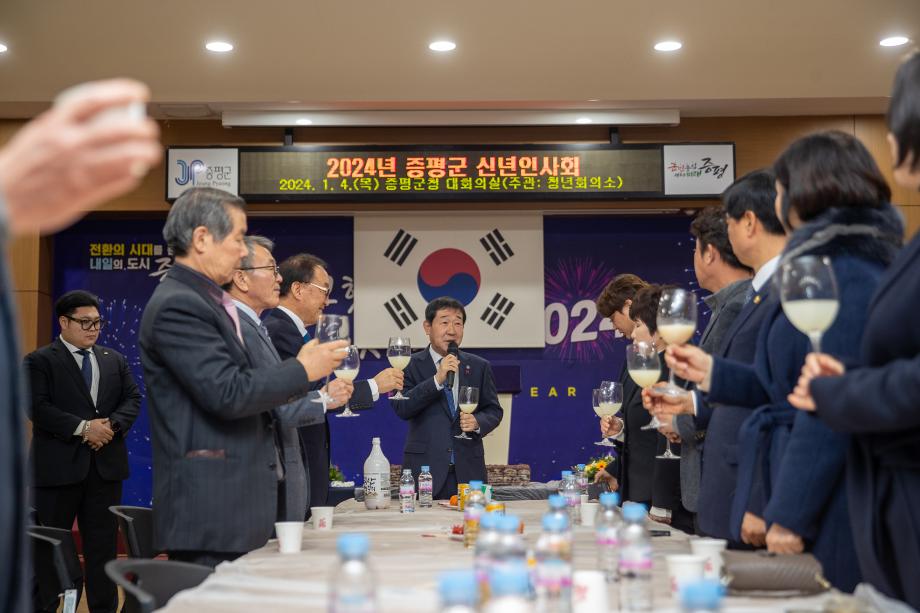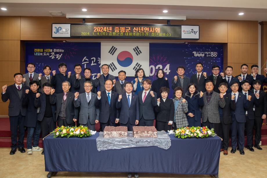 충북 증평군이 갑진년 새해를 맞아 증평 지역 각 기관‧사회단체장이 한자리에 모여 상견례와 덕담을 나누는‘2024년 증평군 신년인사회’를 4일 군청 대회의실에서 개최했다.
