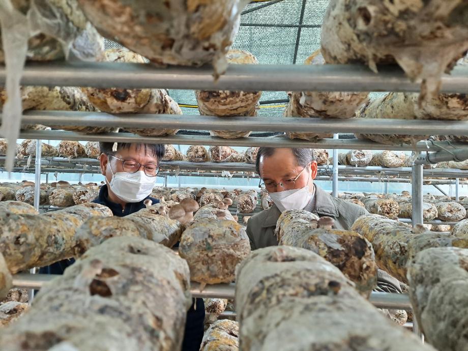 충청북도농업기술원 송용섭 원장이 지난 22일 증평군농업기술센터(소장 오은경)를방문해 기술보급분야 시범사업농가 영농현장을 점검하고 직원 간담회를 가지는 등 현장 행정을 펼쳤다.