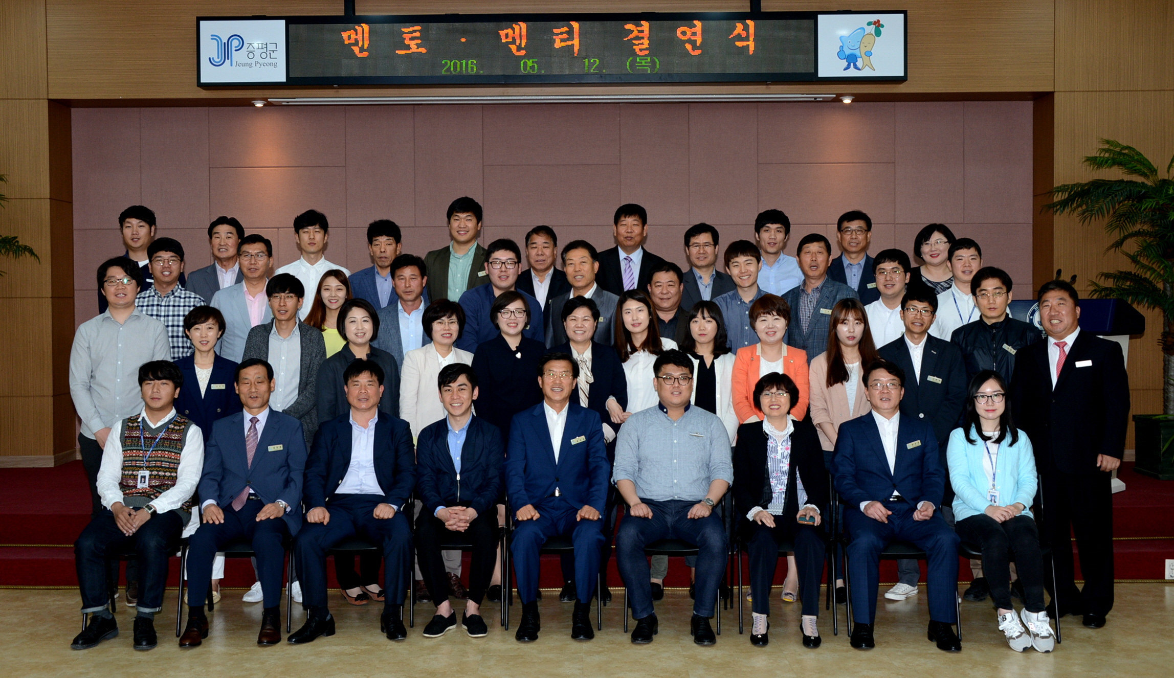 증평군은 12일 군청 대회의실에서 선배공무원 22명과 새내기공무원 22명이 참여한 가운데 멘토-멘티 결연식을 갖고, 조직문화를 공유하고 공직생활의 애로사항을 조언하는 멘토링제를 운영키로 했다.[보도자료실 참조]