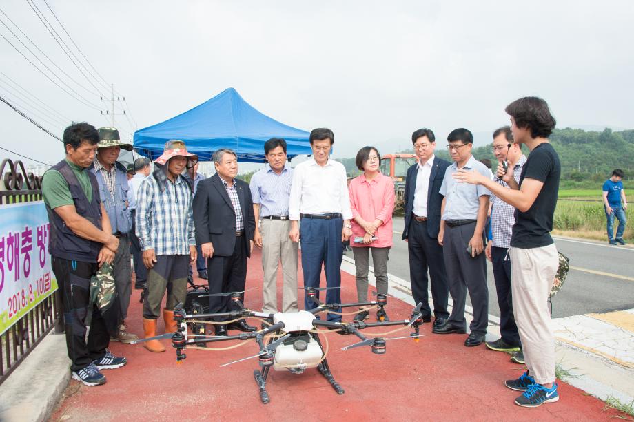 증평군농업기술센터(소장 김선호)는 10일 증평읍 사곡리 일원에서 드론 활용 병해충 방제 기술보급 현장 연시회를 개최했다.