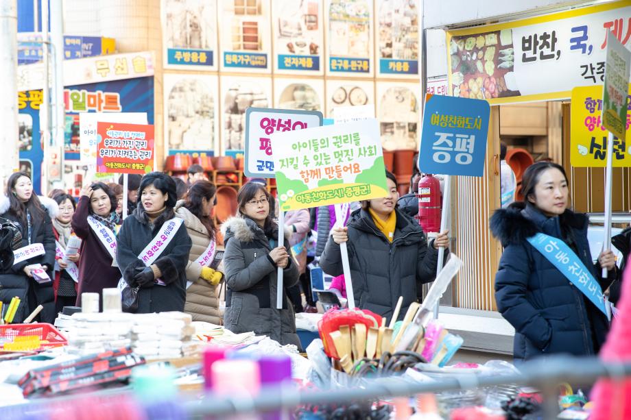 증평군은 21일 증평장뜰시장 일원에서 설 명절을 맞아 양성평등 문화를 확산하기 위한 여성·아동친화도시 홍보 캠페인을 펼쳤다.