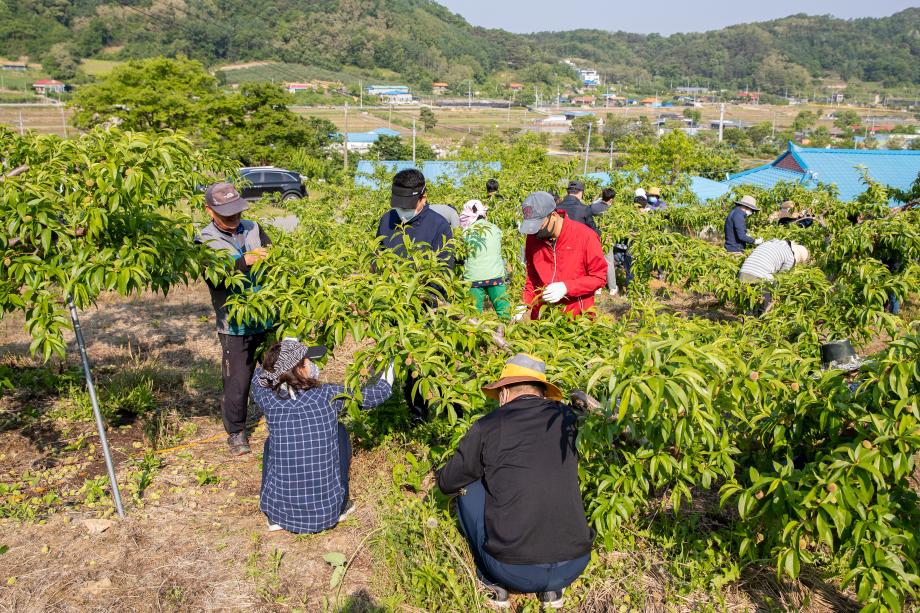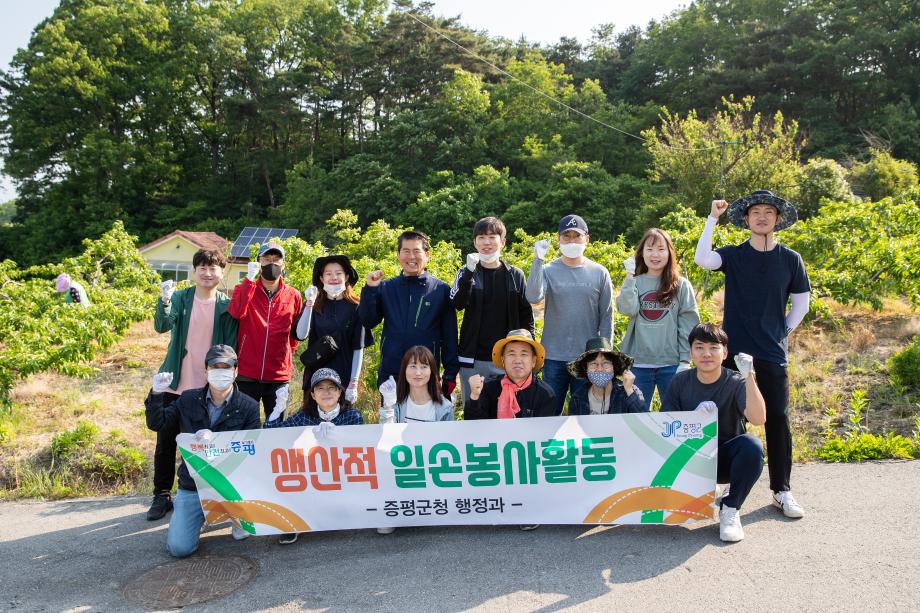 증평군 공직자 80여 명은 23일 지역 곳곳에서 생산적 일손봉사를 펴며 코로나19 장기화로 인력 수급에 큰 어려움을 겪는 농가의 시름을 덜어줬다.