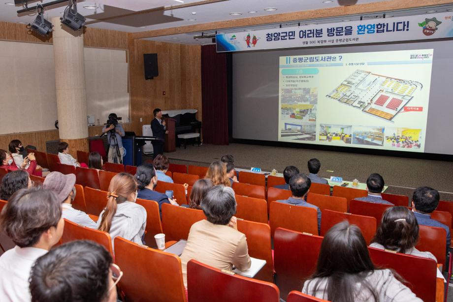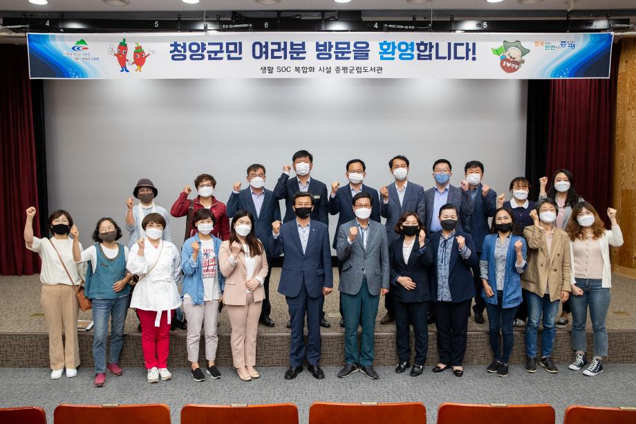 충남 청양군의 김돈곤 군수를 비롯한 20여명이 생활SOC복합시설을 벤치마킹하기 위해 3일 증평군립도서관을 찾았다.