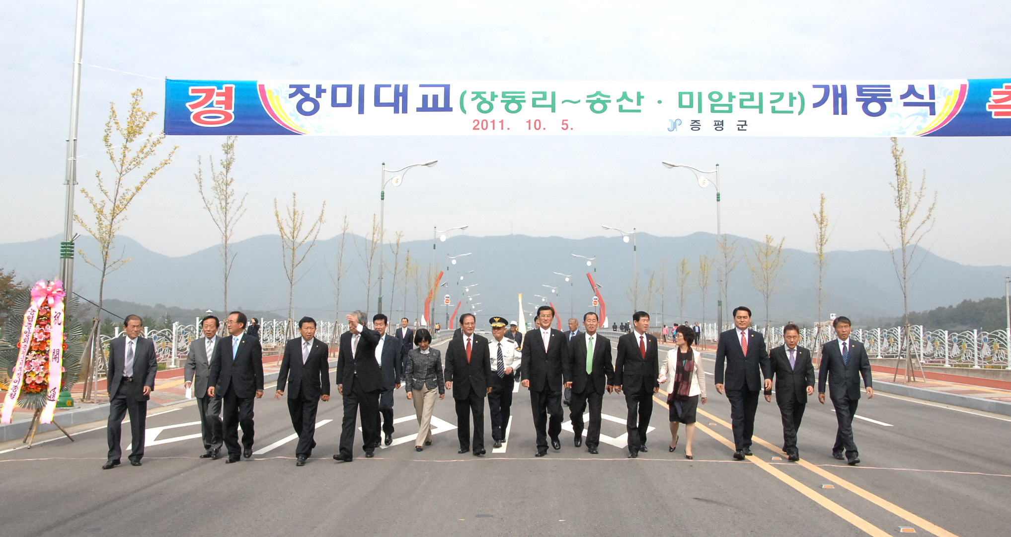 증평일반산업단지 진입도로 개설공사의 일환으로 추진돼 지난해 6월 준공된 ‘장미대교’ 개통식이 5일 오전 10시 30분 증평읍 장동리에 위치한 장미대교 내에서 홍성열 증평군수, 김재룡 군의회 의장 및 군의원, 유관기관 및 사회단체협의회장, 각 마을 이장 등 250여명이 참석한 가운데 열렸다. [보도자료실 참조]