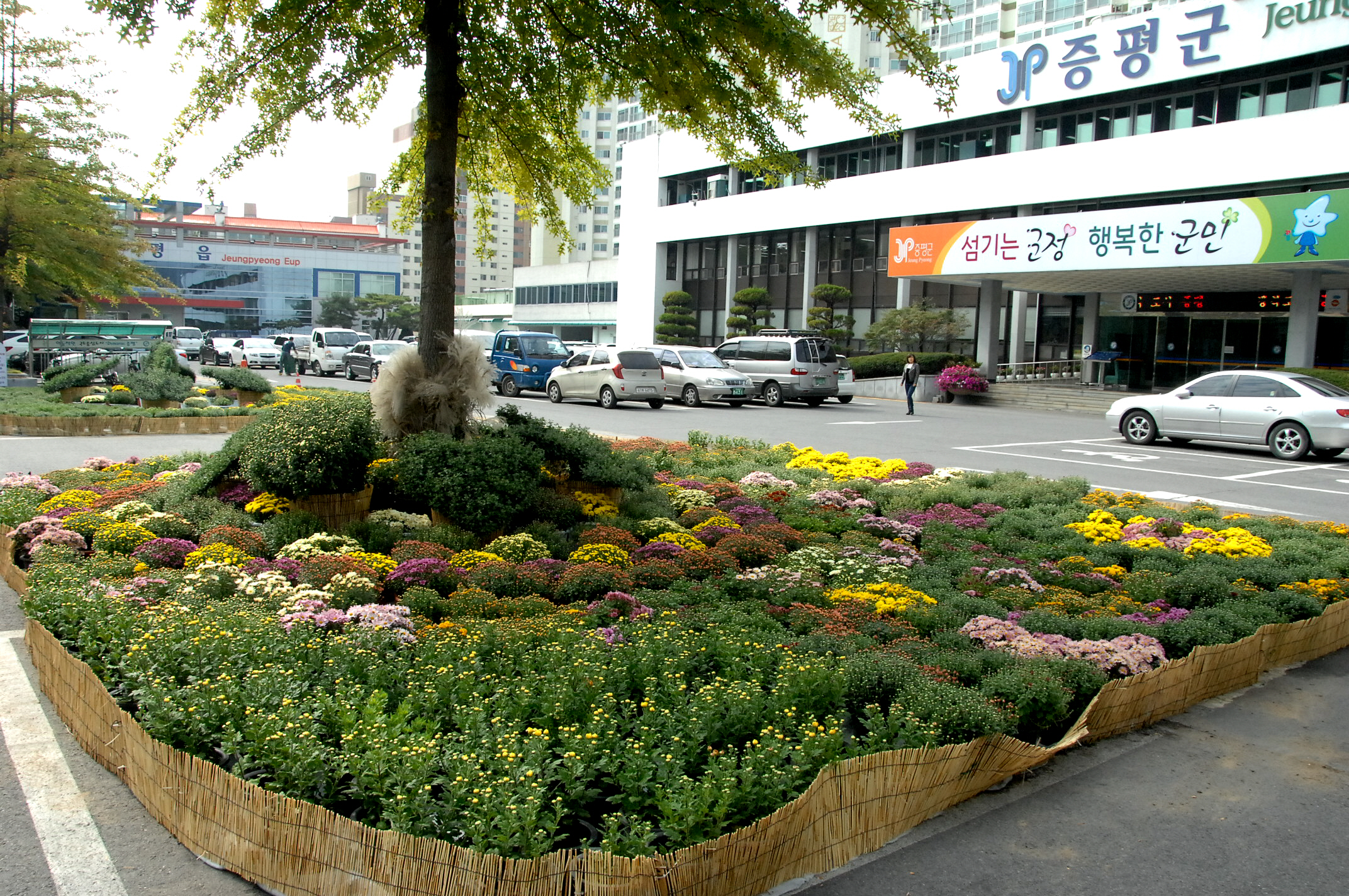 증평군 청사에 가을 국화 향기 물씬