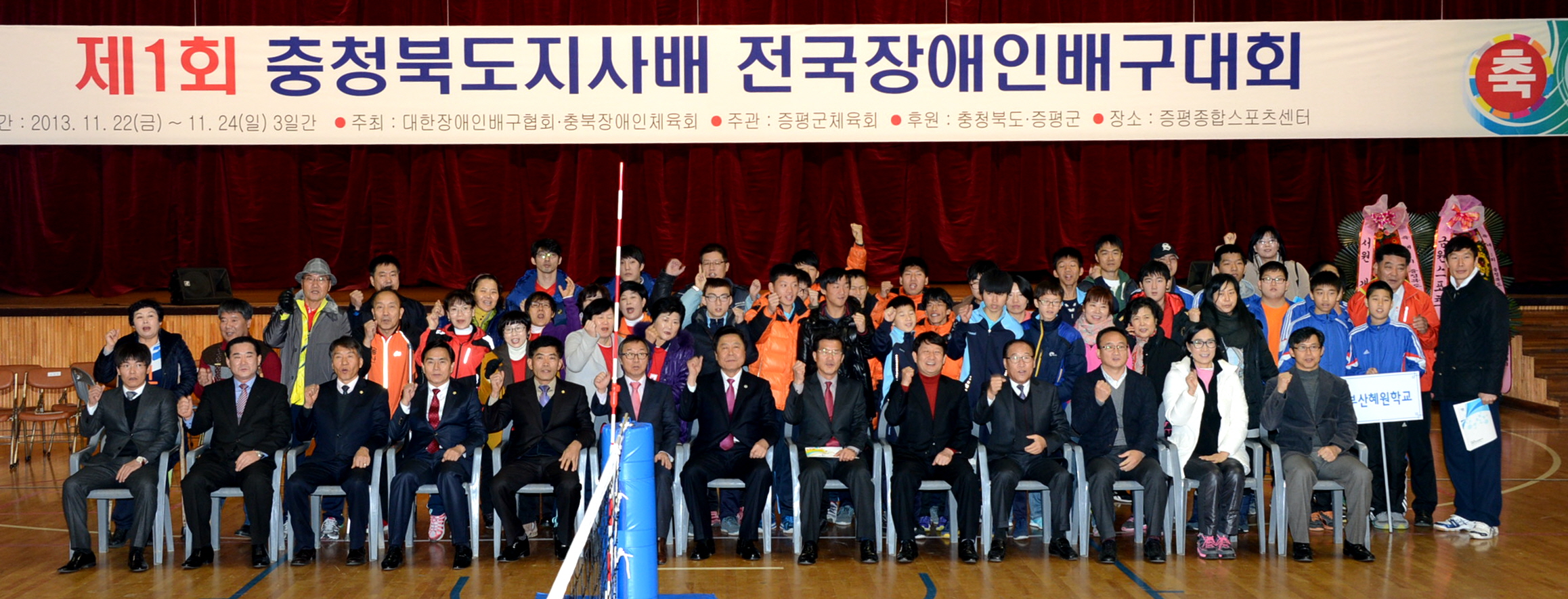 제1회 충북도지사배 전국장애인배구대회가 22일과 23일 증평종합스포츠센터와 증평체육관에서 총16개팀 200여명이 참석한 가운데 열렸다.