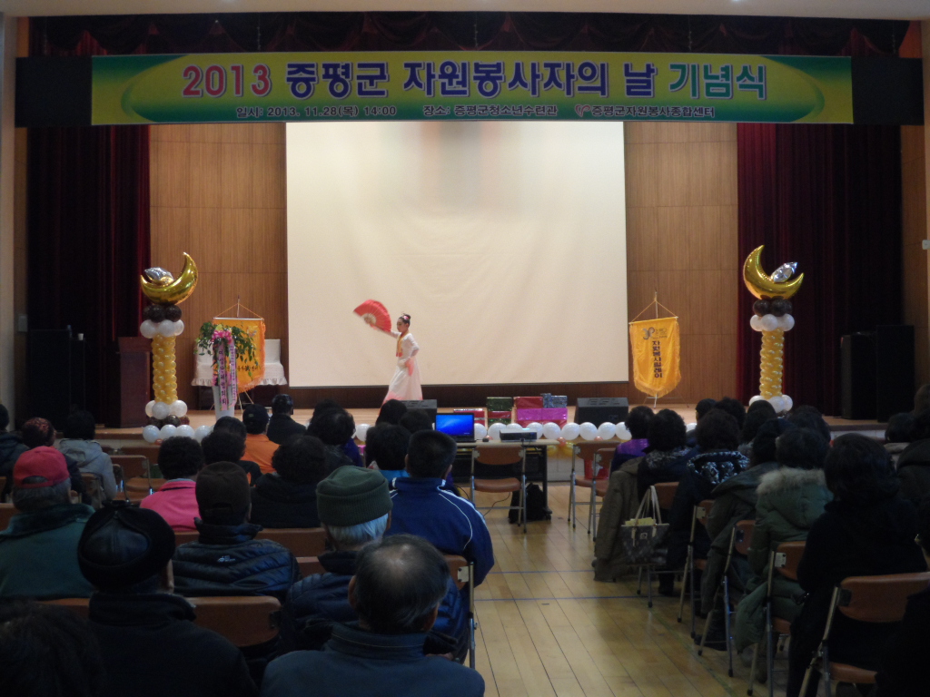 증평군자원봉사종합센터(센터장 김남순)는 28일 오후1시 청소년수련관 대강당에서 홍성열 증평군수, 박석규 군의장 등 지역인사와 자원봉사자 300여명이 참석한 가운데 ‘2013년 자원봉사자의 날 기념식’을 개최했다. [증평보도자료실 참조]