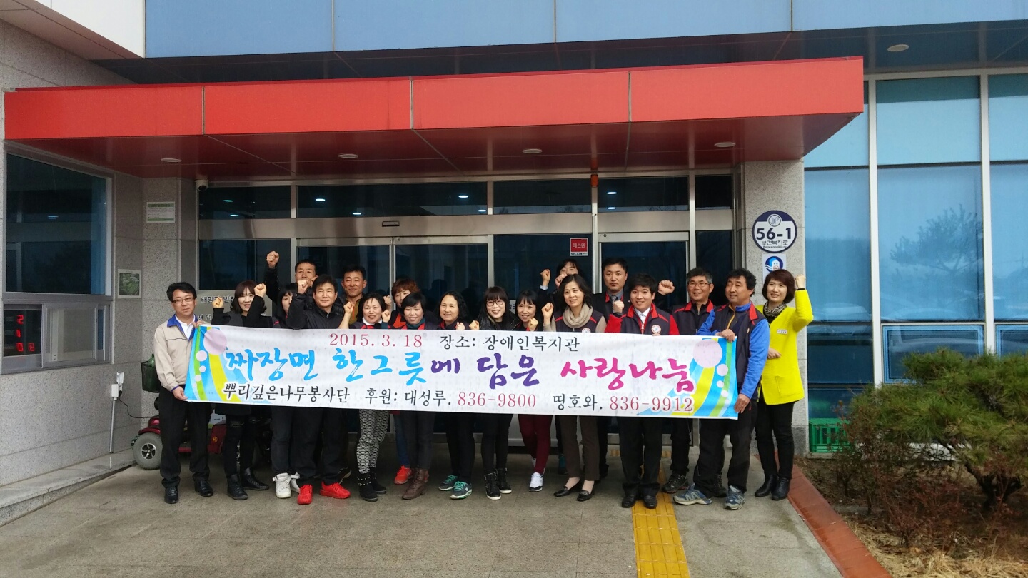 증평군자원봉사종합센터 산하 "뿌리깊은나무봉사단(회장 송동화)은 지난 18일 증평군장애인복지관에서 회원 20여명이 참여해 장애인 150여명을 대상으로 "자장면 한 그릇에 담은 사랑 나눔" 봉사활동을 펼쳤다. [증평보도자료실 참조]
