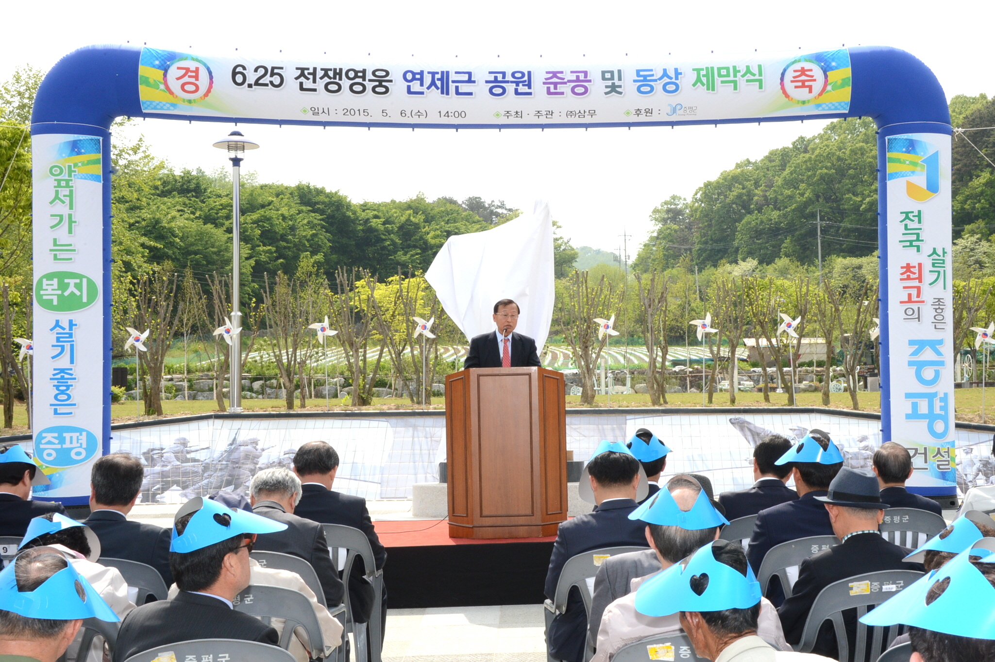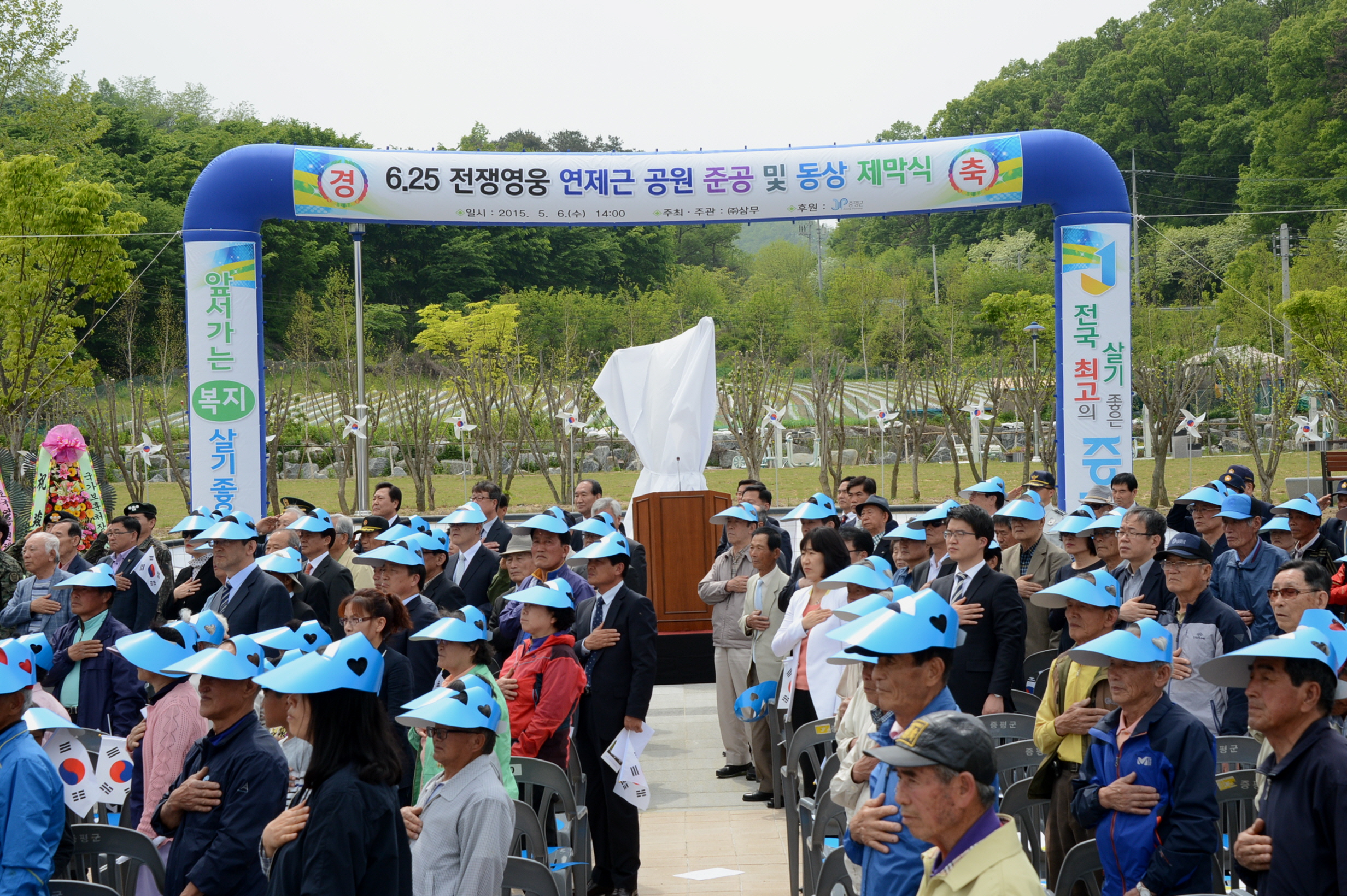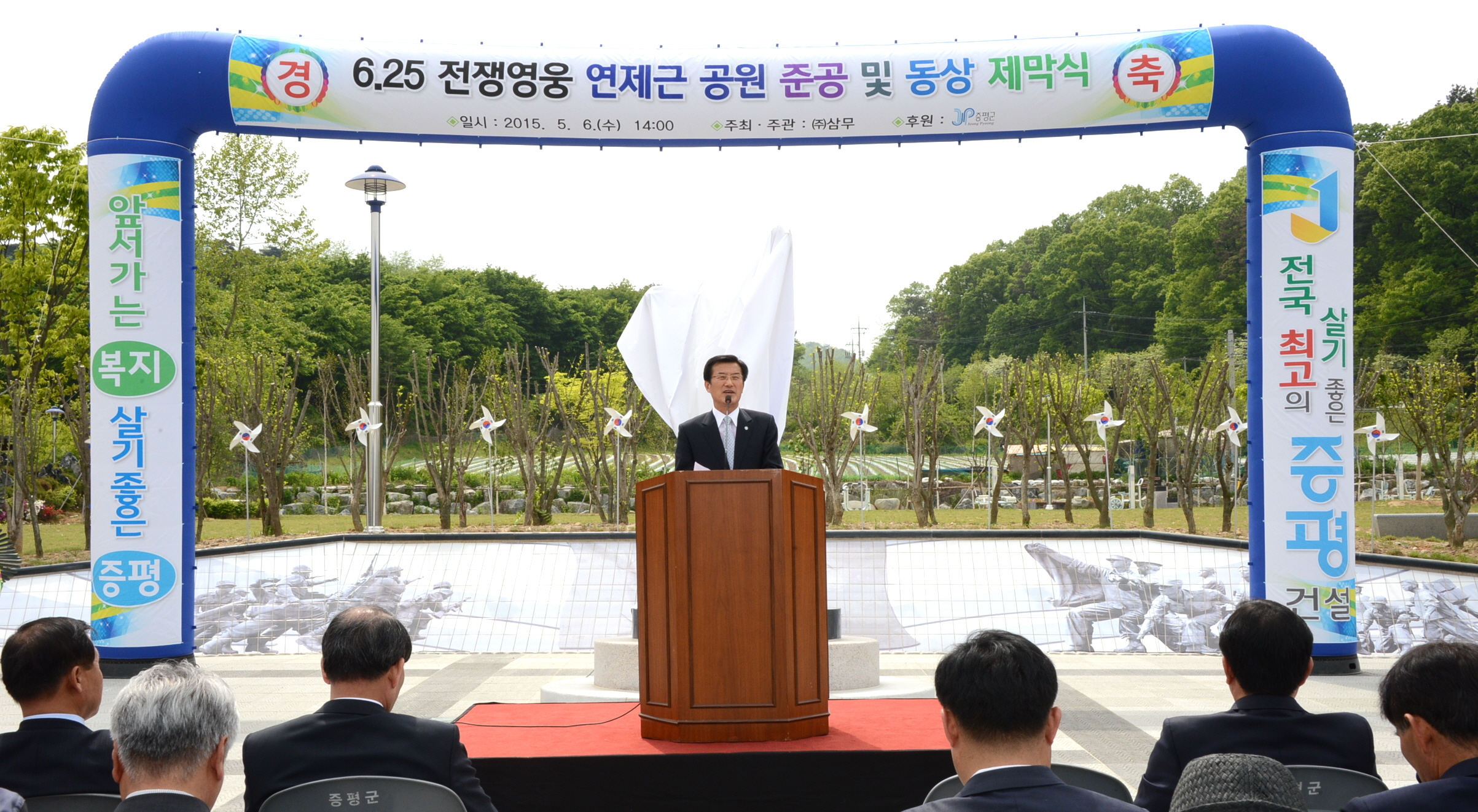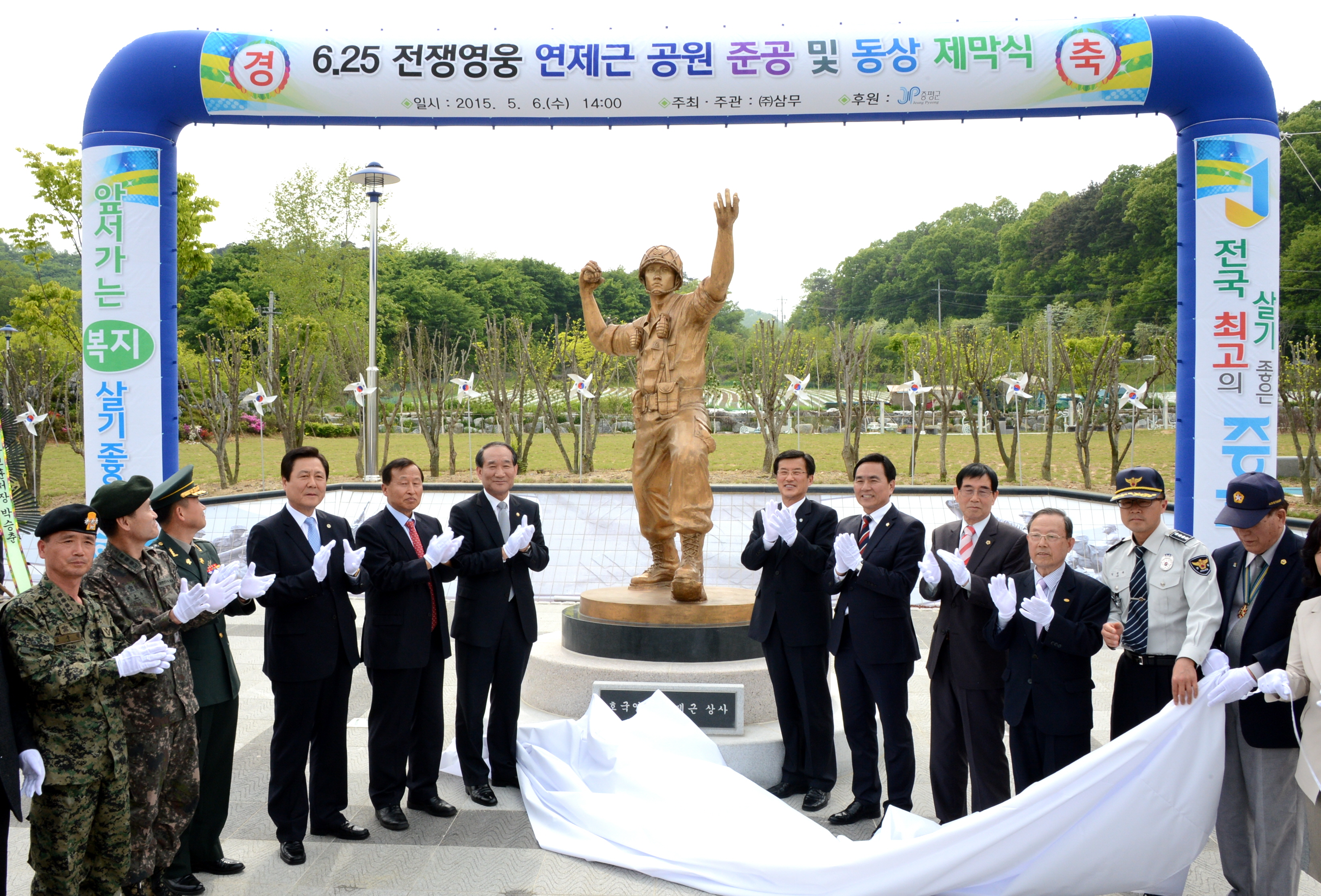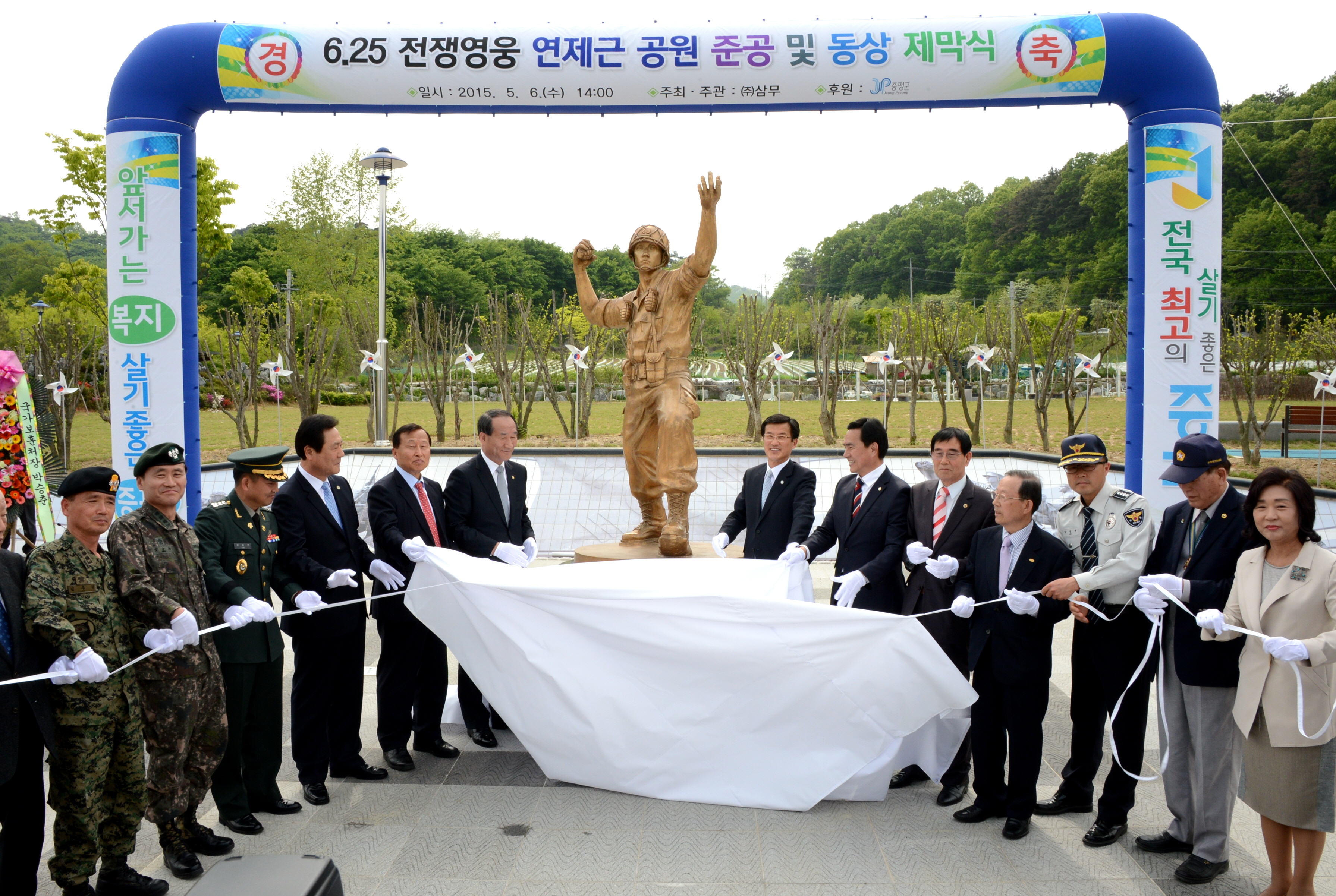 6.25전쟁 호국영웅인 故연제근 상사를 기리기 위한 연제근공원 준공식이 6일 오후 2시 도안면 화성리에서 故연제근 상사 유족 및 기념사업회 관계자와 홍성열 증평군수, 지영섭 군의장, 박승춘 국가보훈처장, 37사단장, 13공수여단장, 보훈단체 회원, 도안 면민 등이 참석한 가운데 열렸다. [보도자료실 참조]