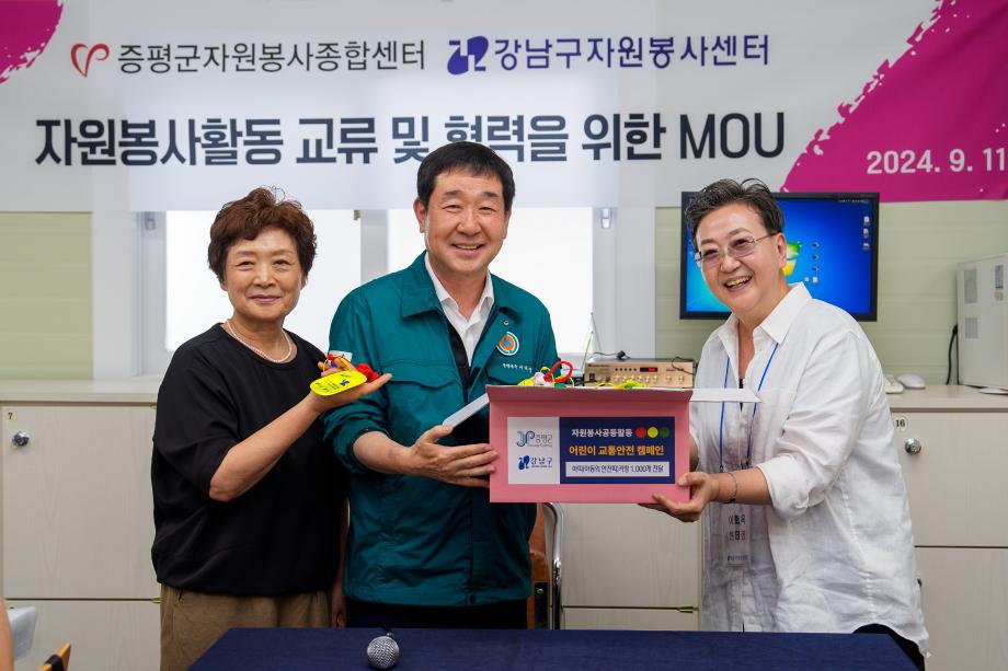 충북 증평군은 11일 증평군자원봉사종합센터(센터장 김남순)가 강남구자원봉사센터(센터장 이화옥)와 자원봉사 협력체계 구축을 위한 업무협약을 체결했다고 밝혔다.