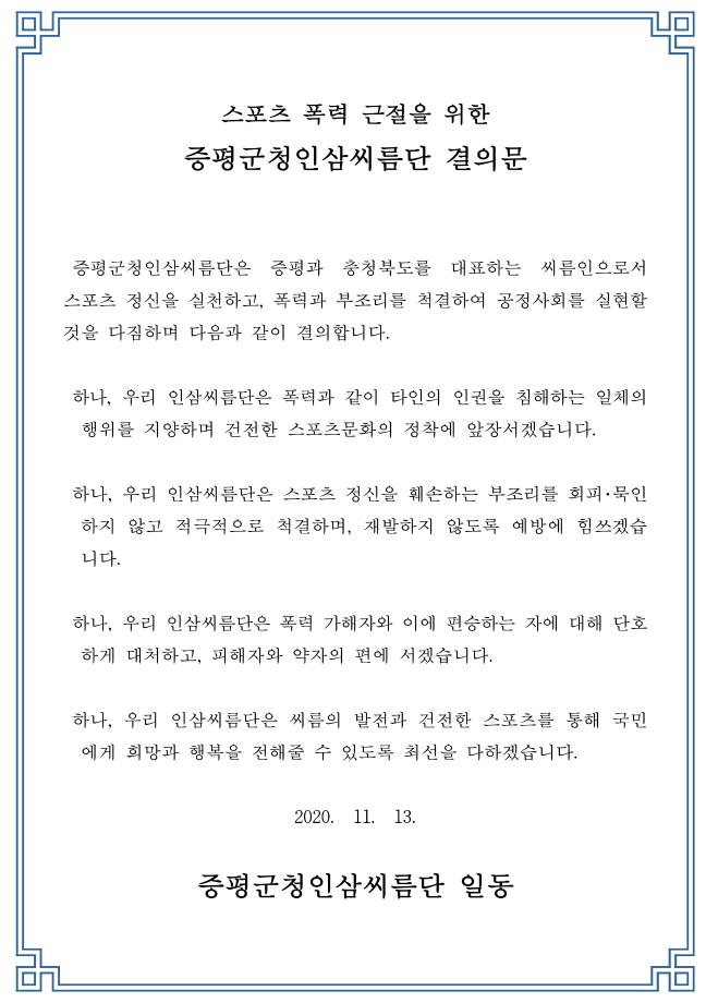 증평군청인삼씨름단, 스포츠 폭력 근절 결의