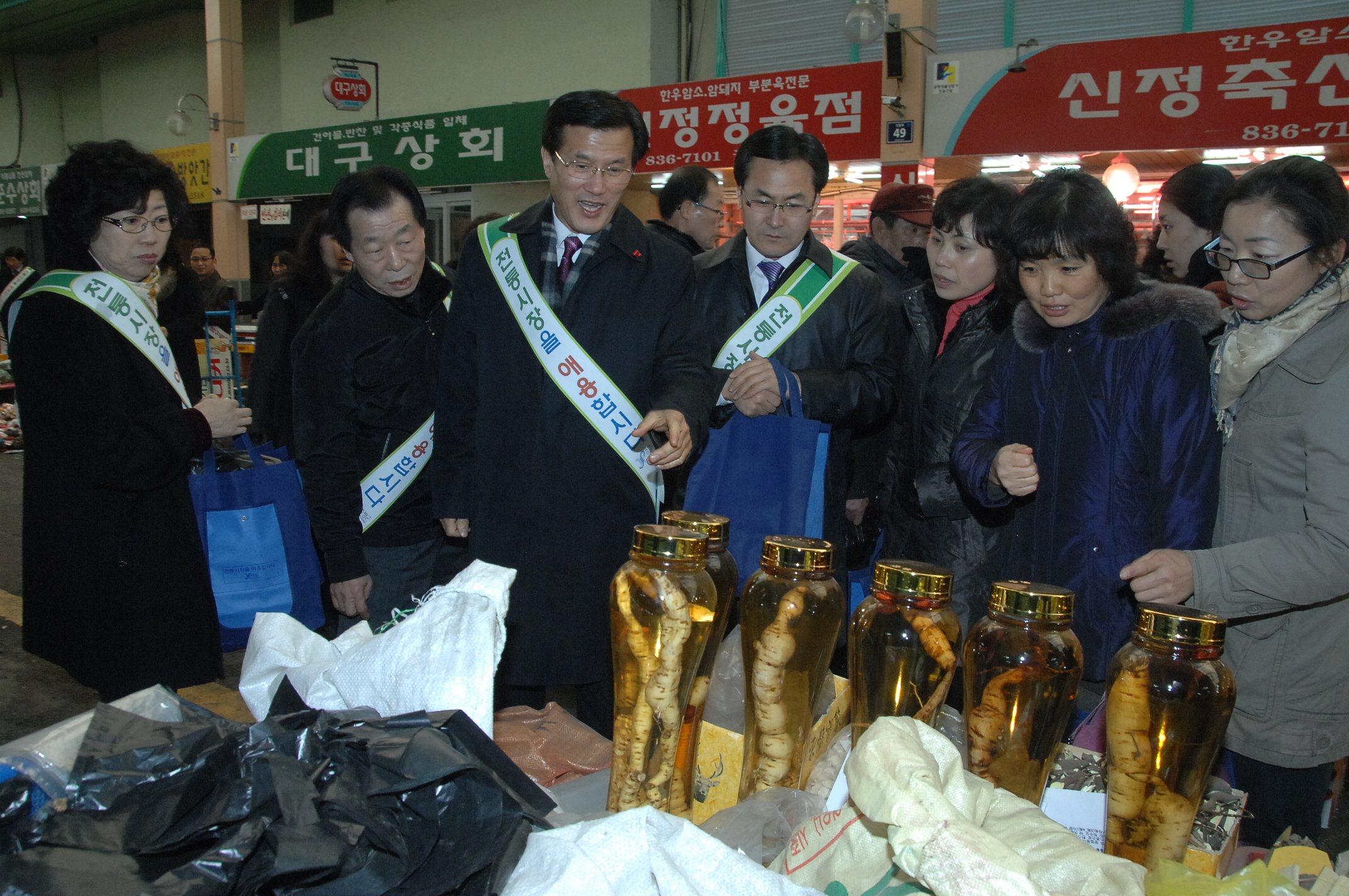 증평군은 설 명절을 맞아 침체된 서민경제에 활력을 불어 넣기 위해 1일 오후 4시부터 증평군 공직자, 군의원, 농협증평군지부 등이 참여한 가운데 재래시장 장보기 행사를 개최했다.