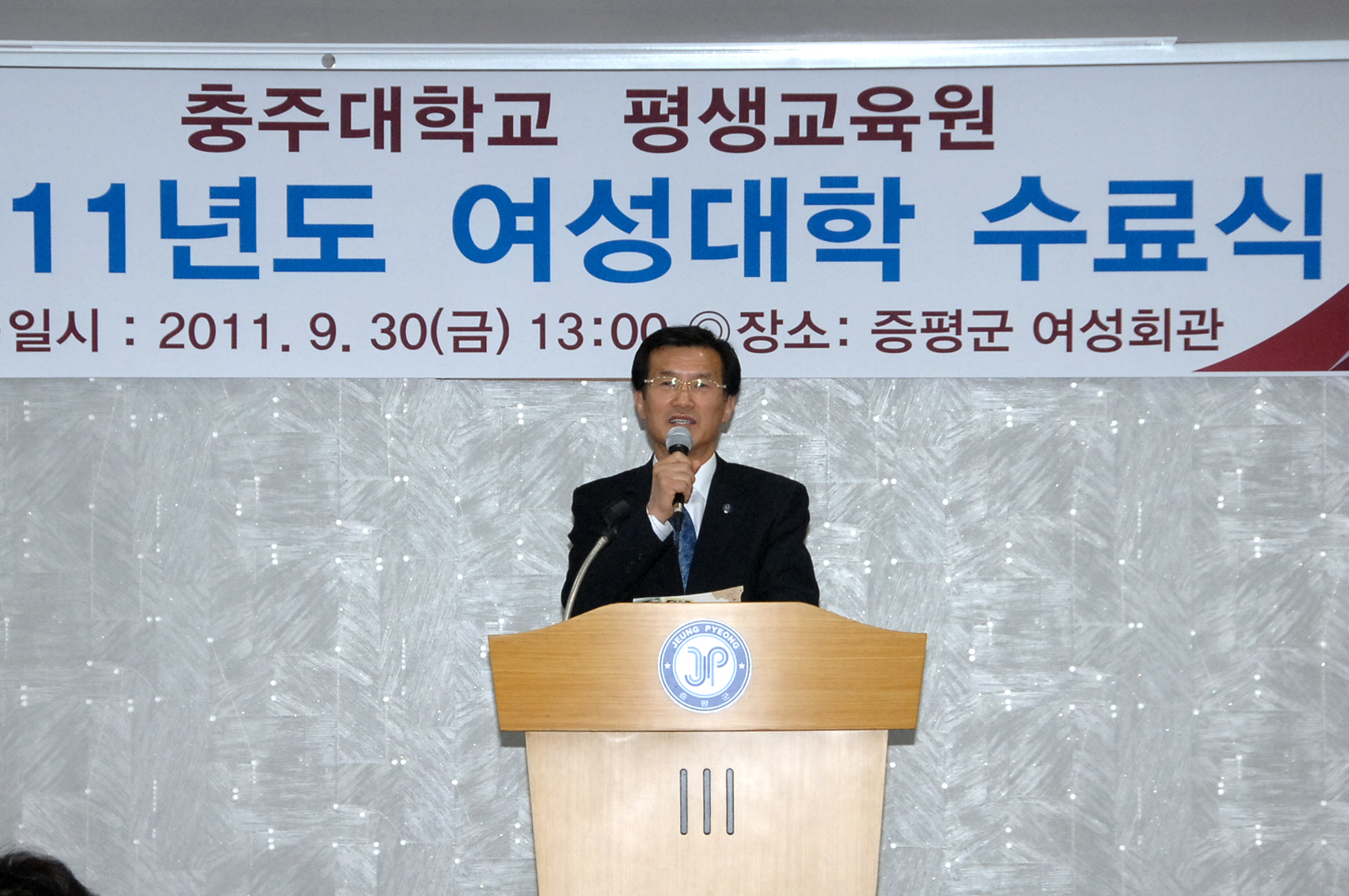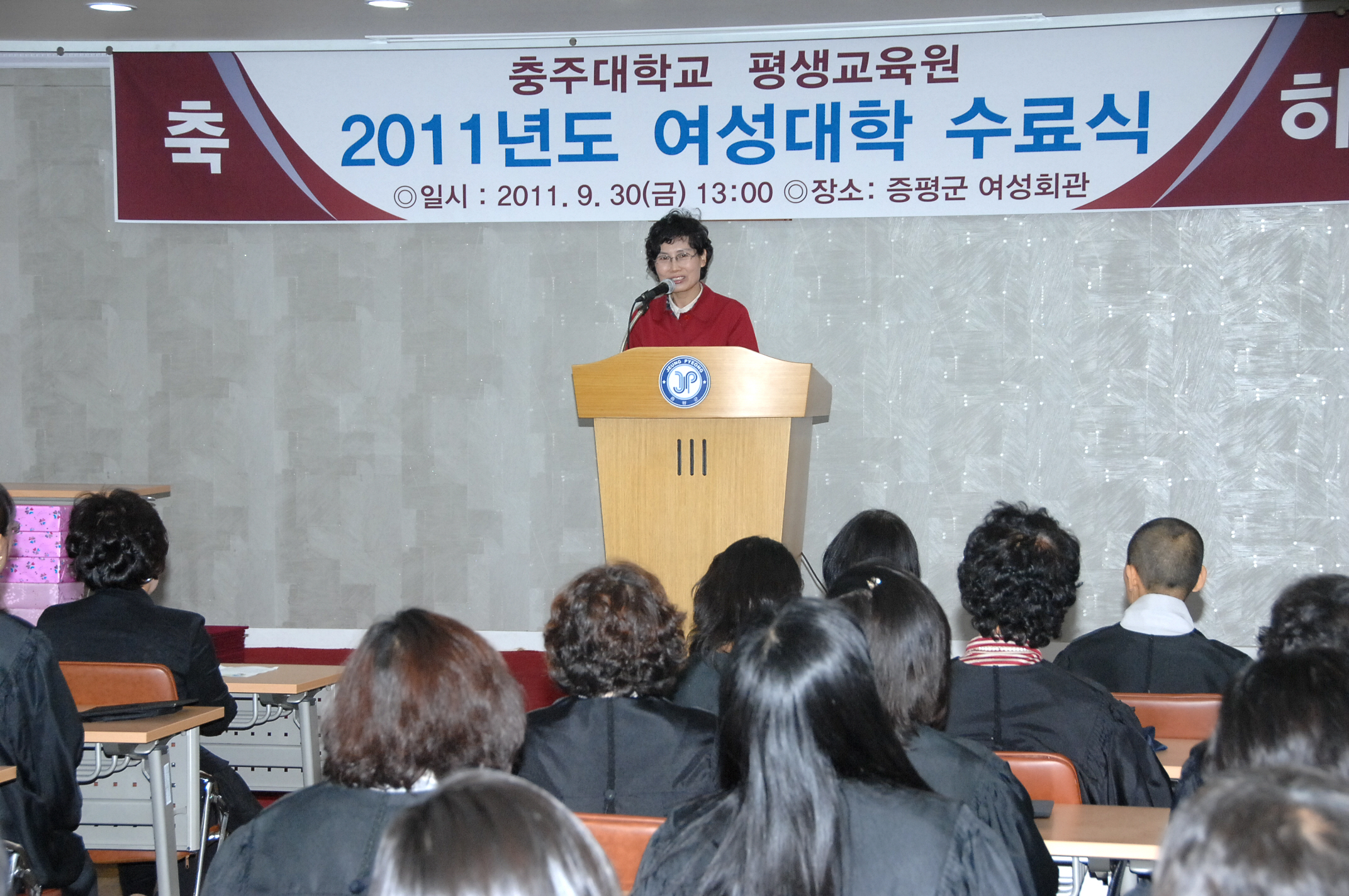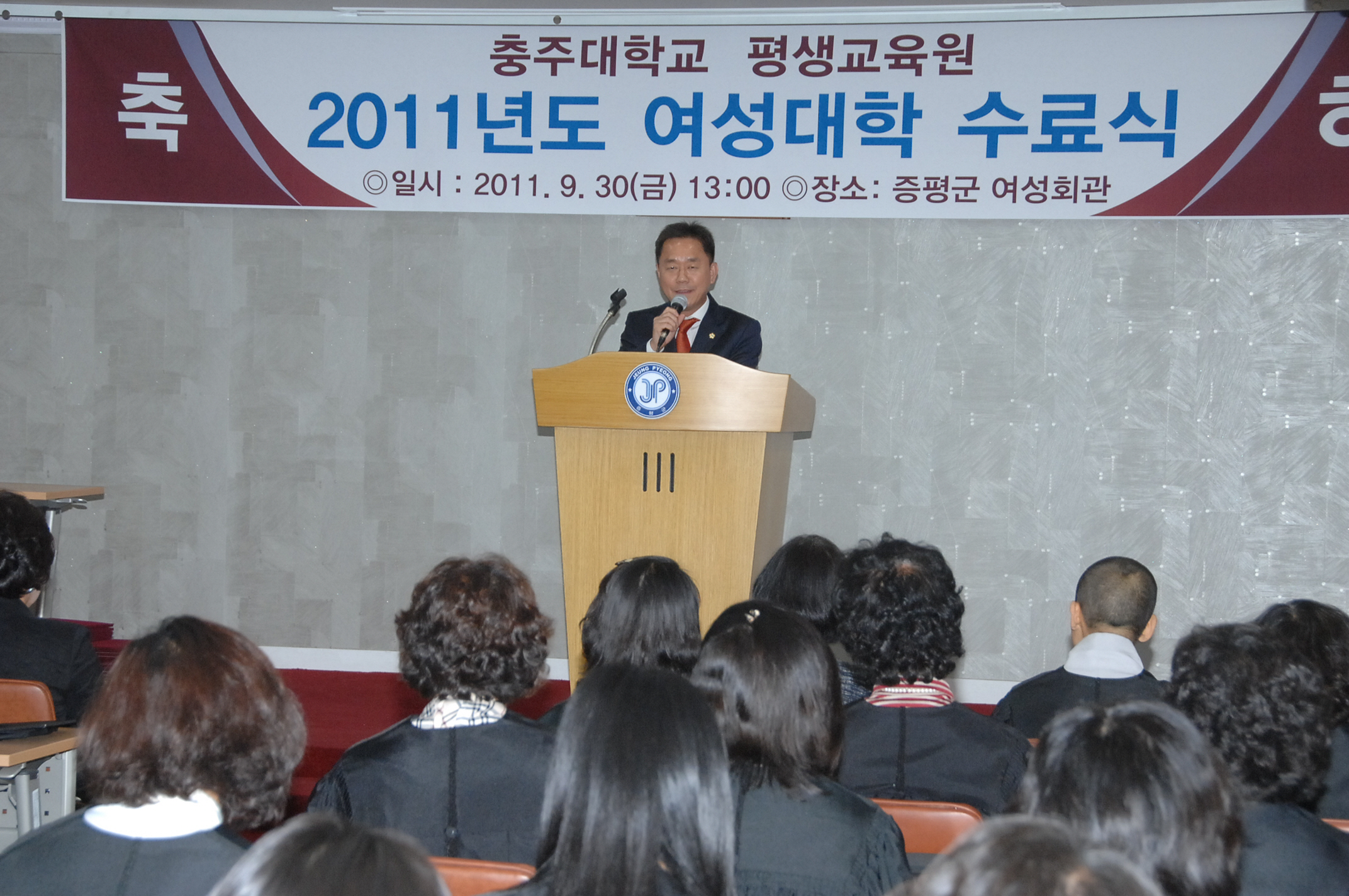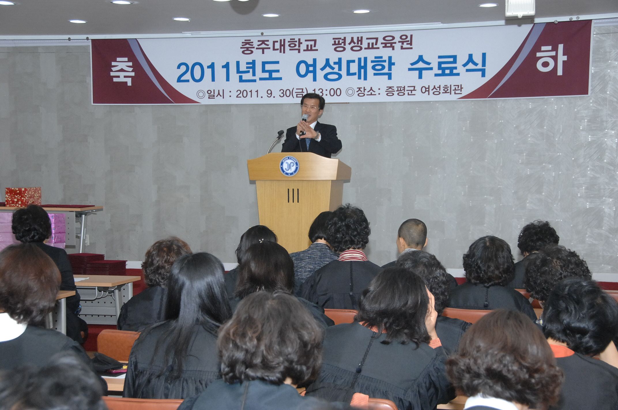증평군이 여성들의 사회적 참여와 역할을 확대하기 위해 지난 6월 23일 개강했던 여성대학 참가자들이 9월 30일 증평여성회관에서 수료식을 가졌다.[보도자료실 참조]