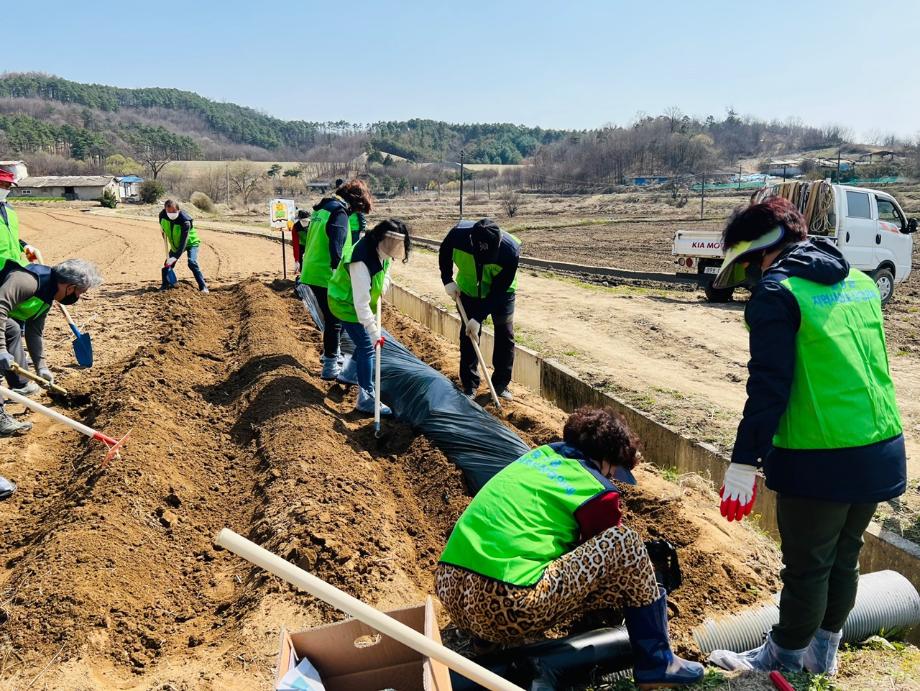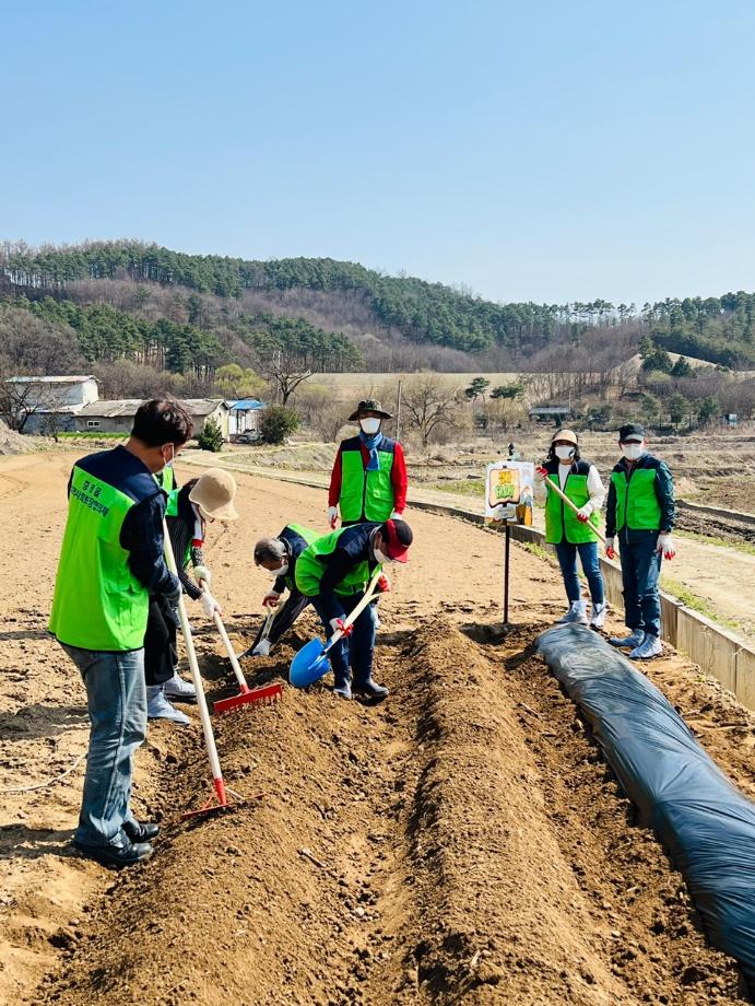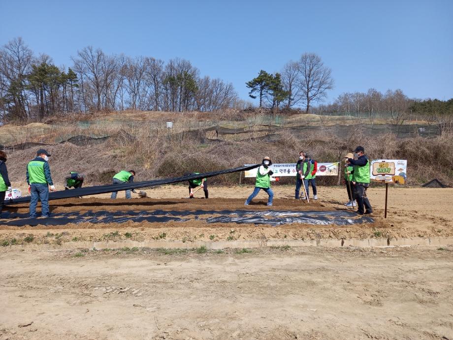 증평읍 지역사회보장협의체(공동위원장 최광수, 이기엽)는 29일 협의체 위원과 증평읍사무소 직원 등 20여명이 참여한 가운데 지역특화사업으로 추진하는 감자팜(초중리 소재)에 씨감자를 심고 비닐 멀칭작업을 진행했다.