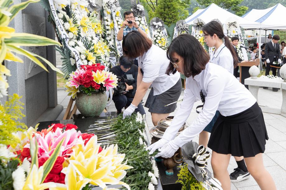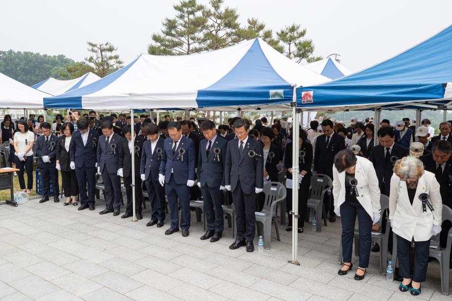 증평군은 제64회 현충일을 맞아 6일 증평읍 내성리 보건복지타운 내 충혼탑에서 홍성열 증평군수를 비롯한 보훈단체장과 보훈가족, 기관․단체장과 군민 등 300여명이 참석한 가운데 제 64회 현충일 추념식을 열었다.
