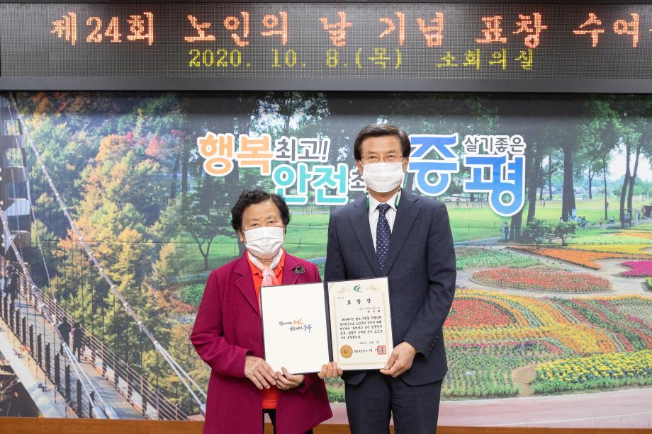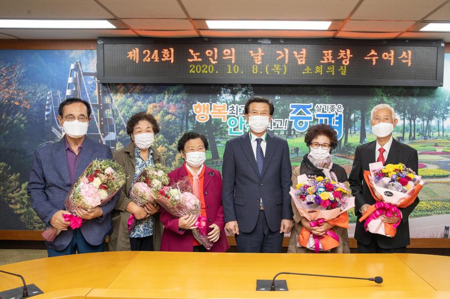 증평군은 지난 8일 군청 소회의실에서 제24회 노인의 날을 맞아 어르신에 대한 공경과 감사의 마음을 되새기기 위해 모범노인과 노인복지 기여자에게 표창을 수여했다.