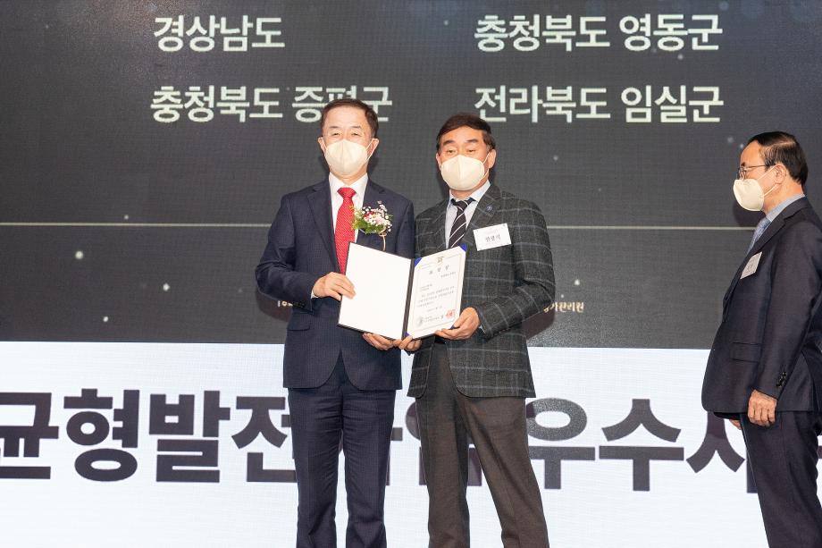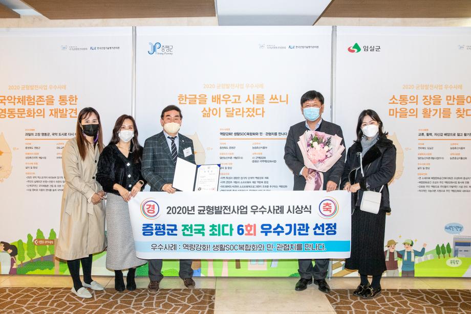 증평군(군수 홍성열)이 대통령직속 국가균형발전위원회가 주관한 균형발전사업 시상식에서 전국 최다인 6회 수상의 영예를 안았다.