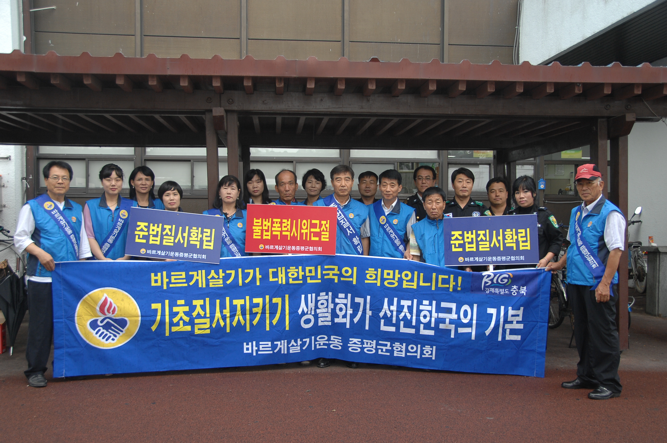 바르게살기운동 증평군협의회는 역전자율방범대와 연계해 30일 오전 11시 증평군청 앞 사거리 인근에서 법질서 확립 캠페인을 전개했다.[증평포커스 참조]