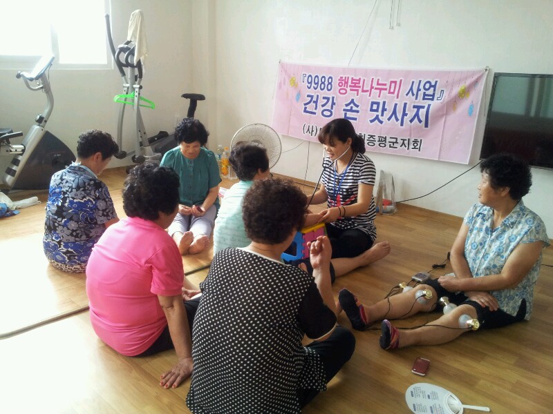 2013년 증평군 (사)대한노인회 증평군지회에서 운영하고 있는 9988 행복나누미 사업이 어르신들의 건강증진과 무더운 여름을 이기는 생활의 활력소가 되고 있다. [증평보도자료실 참조]