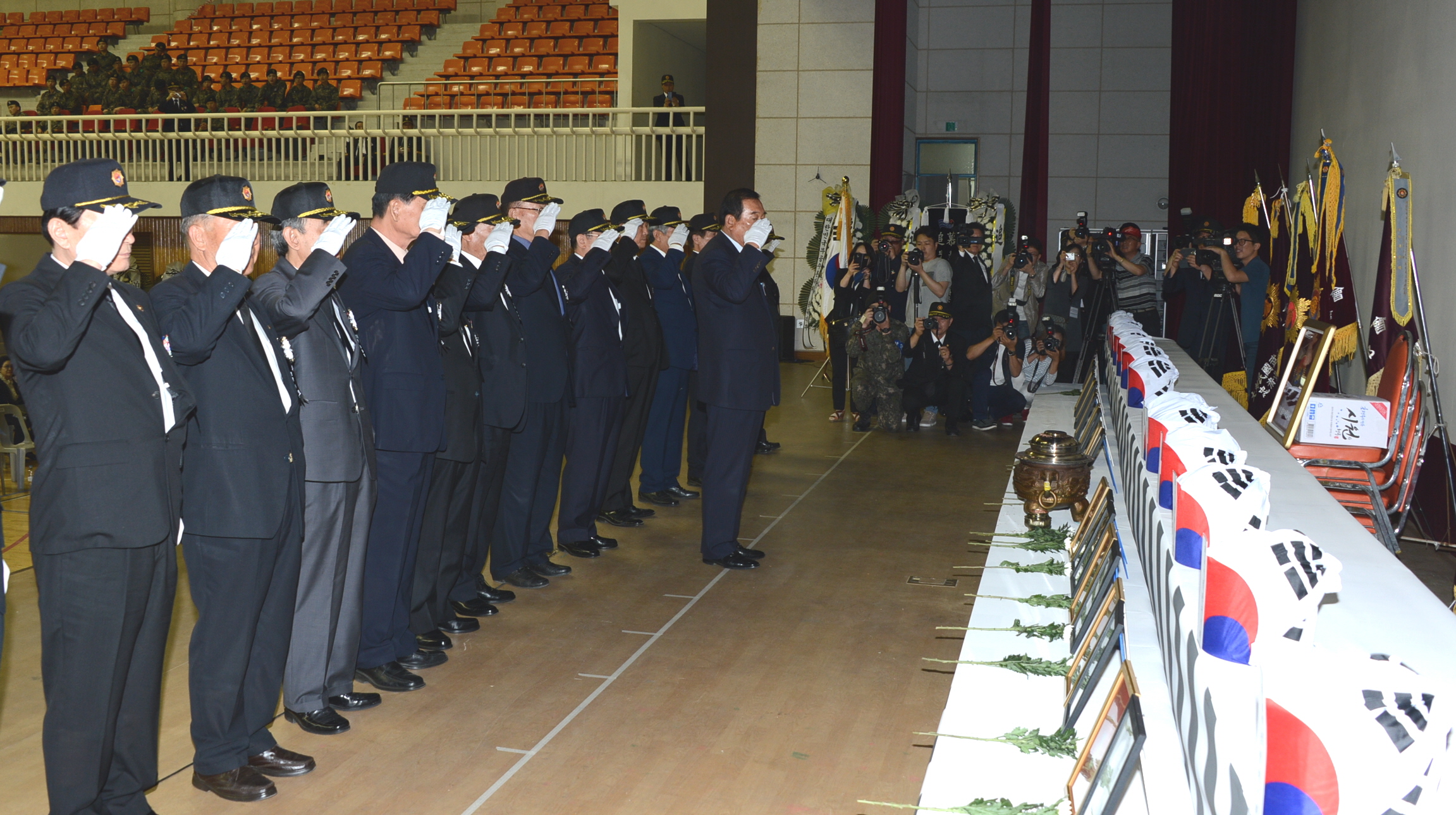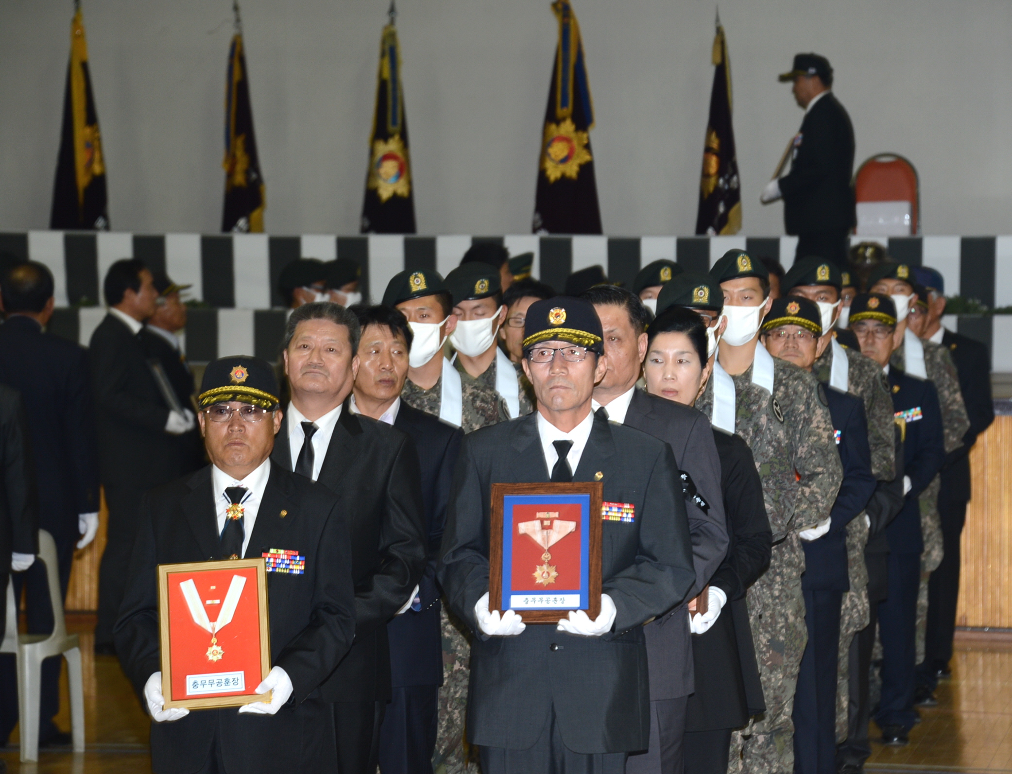증평군은 27일 증평군 스포츠센터에서 이시종 도지사, 홍성열 증평군수, 충북지부 무공수훈자지회를 비롯해 각 보훈단체회원, 유가족 등 1,000여명이 참석한 가운데 국가유공자 합동이장 영현 봉송식을 가졌다. [보도자료실 참조]